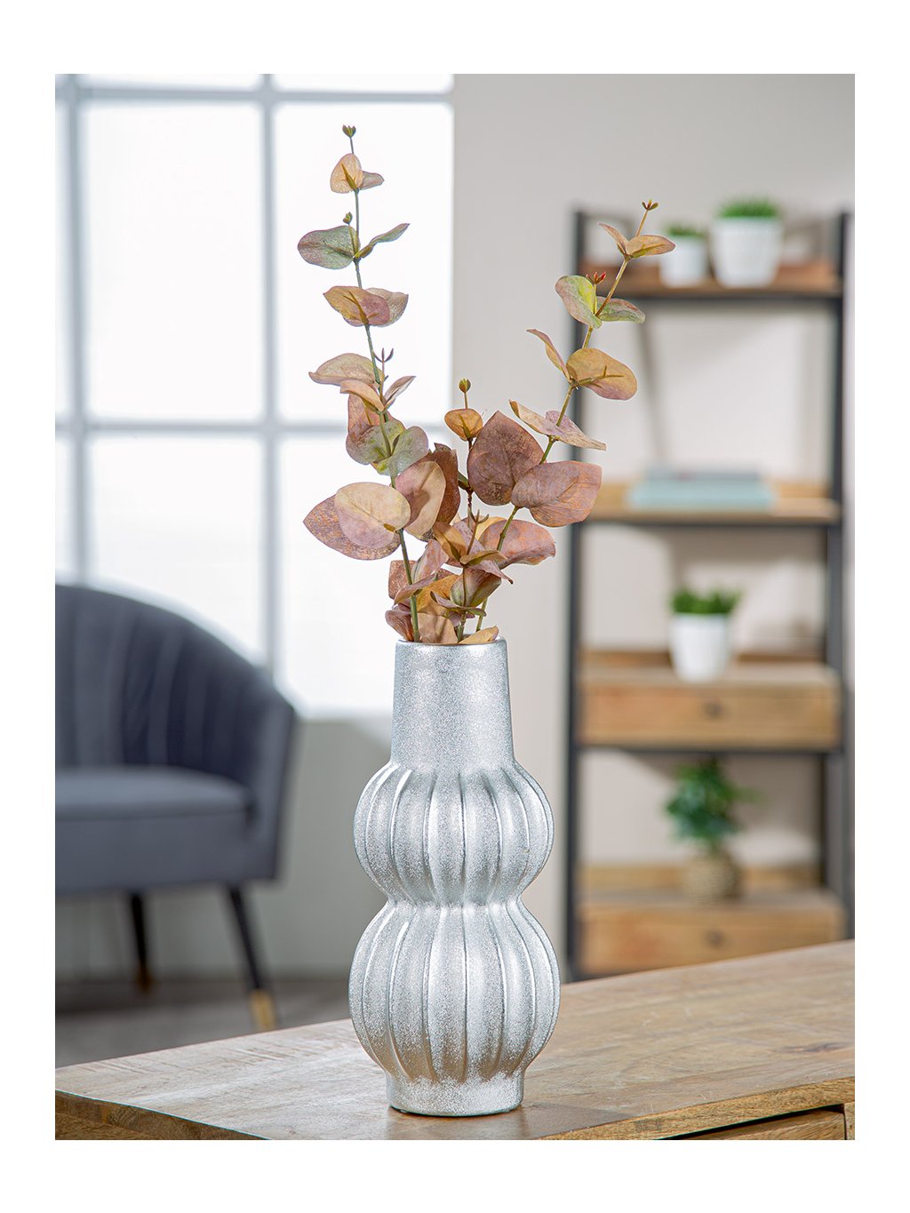Keramická váza Argento v elegantnom striebornom prevedení zaujme svojím organickým, jemne zvlneným tvarom. S rozmermi 30x13,5cm a trblietavou textúrou je ideálnym moderným doplnkom, ktorý rozžiari každý jedálenský stôl alebo komódu.