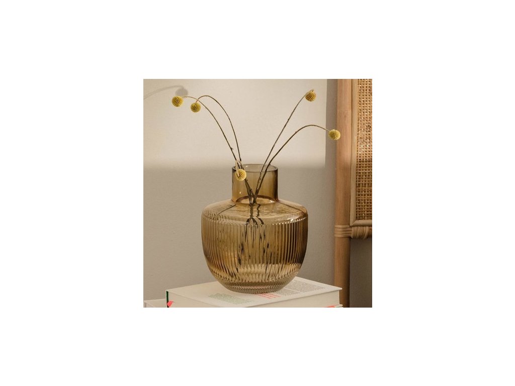 Predstavujeme vám vázu - skvelé riešenie pre dekoráciu vašej obývačky. Vyrobená z dymového skla s reliéfnym vzorom dodá vášmu interiéru sofistikovaný a rafinovaný vzhľad.
