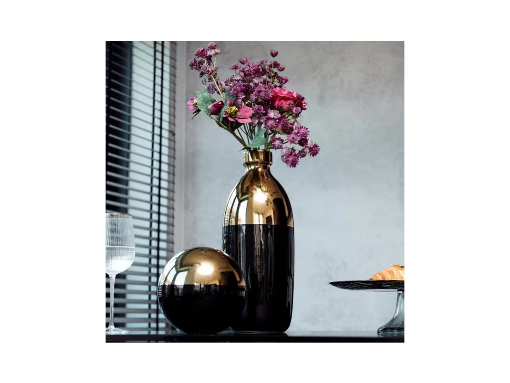 Zlatá keramická váza. Je štýlovou a klasickou dekoráciou, ktorá vďaka kvetom prinesie kúsok prírody do každej miestnosti. Skvelo ozdobí váš jedálenský stôl alebo doplní váš interiér. Nájde si svoje miesto a uplatnenie v každej izbe a pekne vkusne ju premení.
