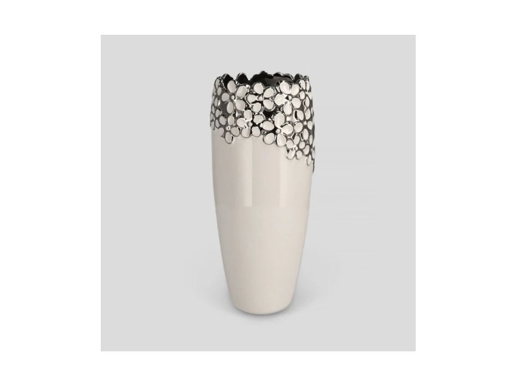 Biela váza z dolomitu s ozdobnou kvetovou hornou časťou. Je štýlovou a klasickou dekoráciou, ktorá vďaka kvetom prinesie kúsok prírody do každej miestnosti. Skvelo ozdobí váš jedálenský stôl alebo doplní váš interiér. Nájde si svoje miesto a uplatnenie v každej izbe a pekne vkusne ju premení.