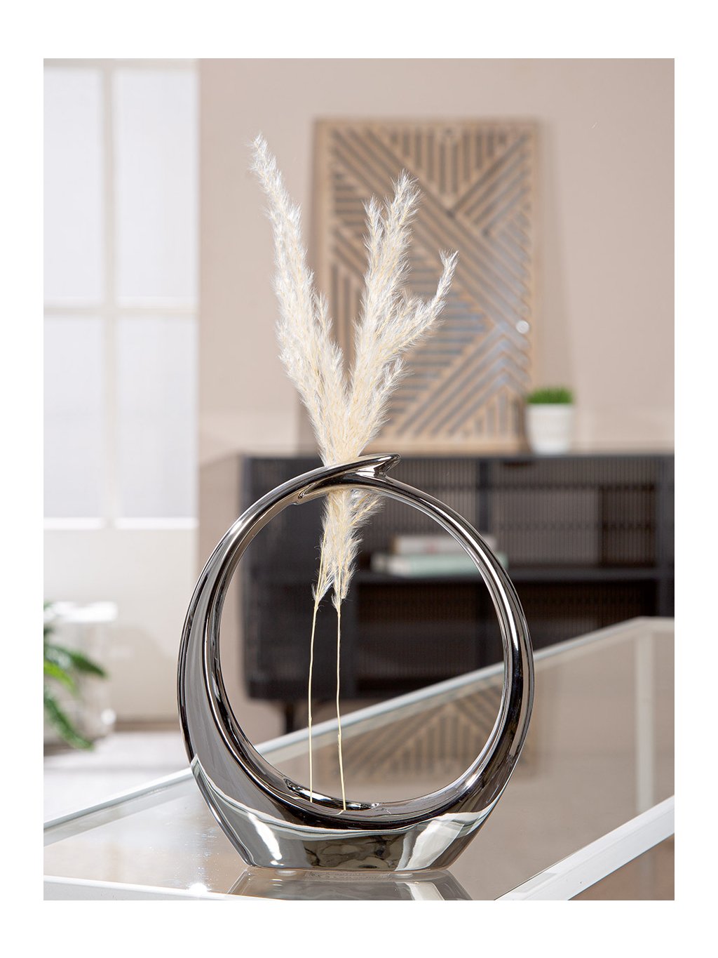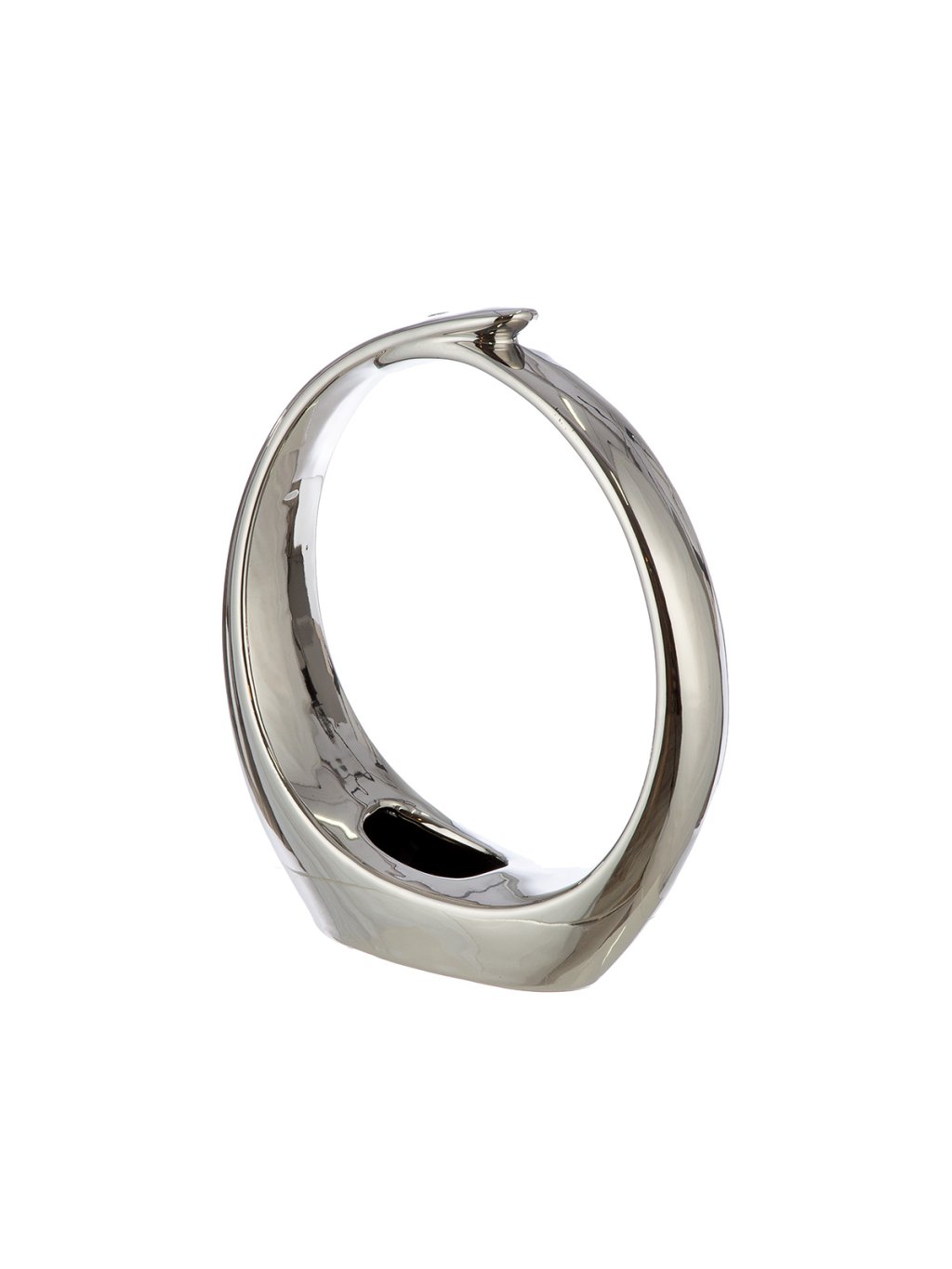 Táto váza nie je len obyčajnou nádobou na kvety, ale samostatným dekoratívnym objektom. Jej atypický prstencový tvar a zrkadlový lesk dokonale zapadnú do minimalistických, glamour aj moderne ladených priestorov.