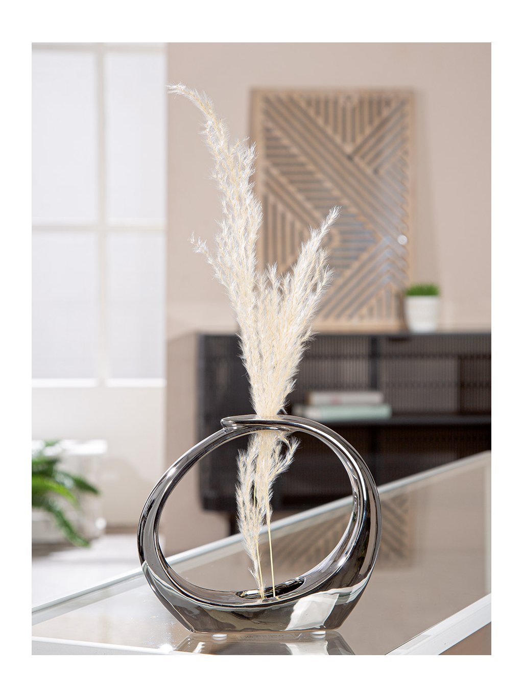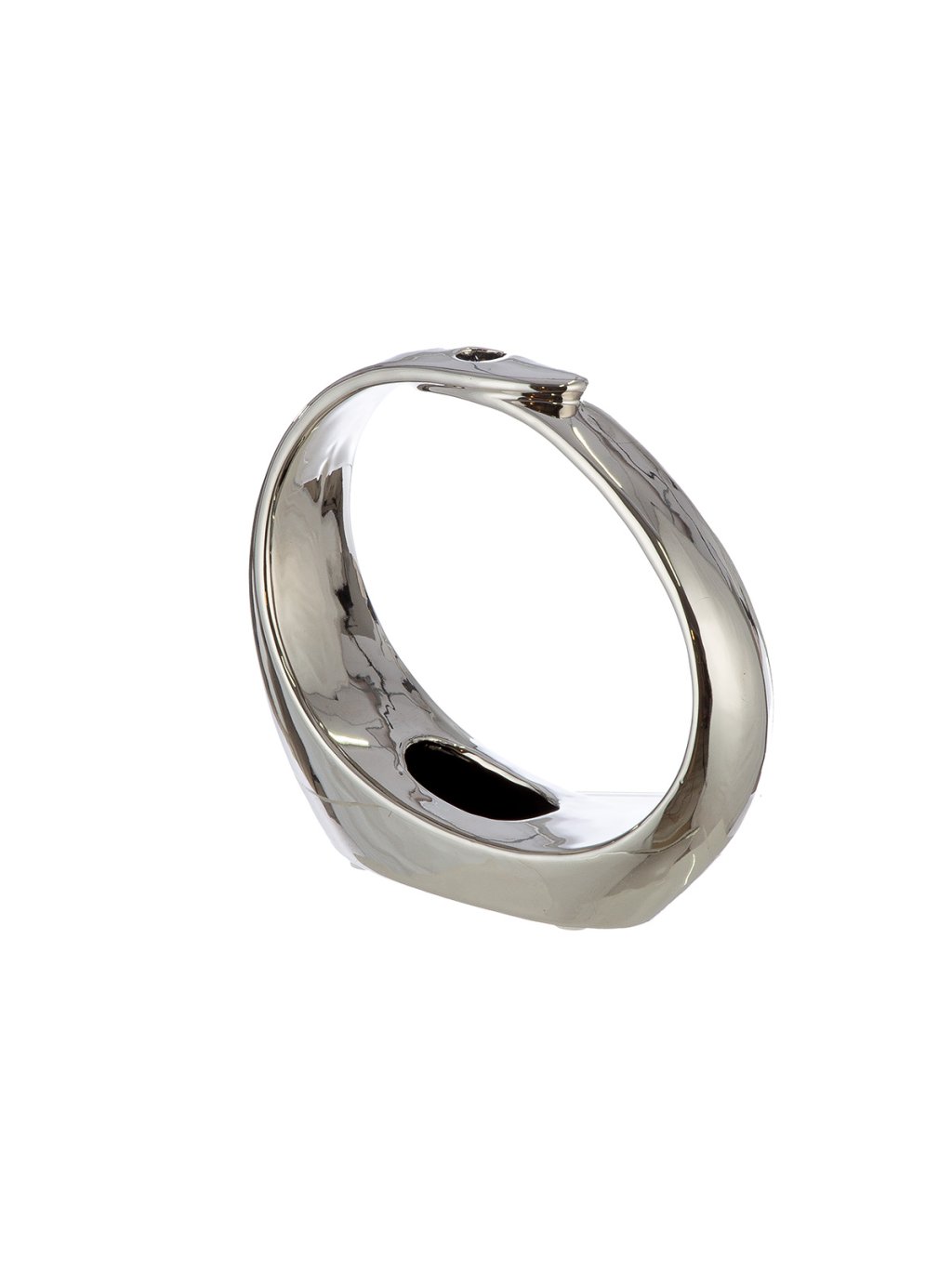 Táto váza nie je len obyčajnou nádobou na kvety, ale samostatným dekoratívnym objektom. Jej atypický prstencový tvar a zrkadlový lesk dokonale zapadnú do minimalistických, glamour aj moderne ladených priestorov.