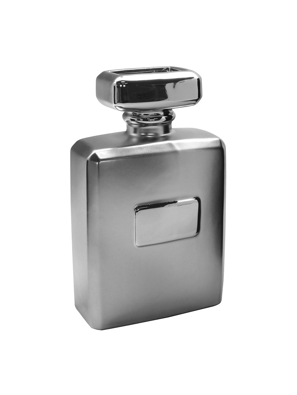 Dodajte svojmu interiéru nádych luxusu a elegancie s touto originálnou vázou, ktorá na prvý pohľad pripomína ikonický flakón parfému. Jej nadčasové strieborné prevedenie a vysoký lesk z nej robia neprehliadnuteľný doplnok, ktorý pristane každej modernej kúpeľni, spálni či obývačke.