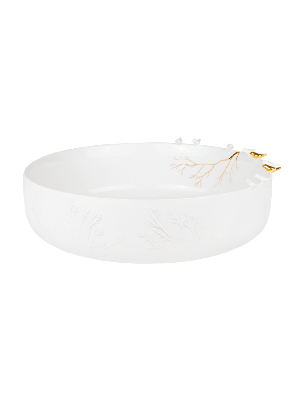 Umenie v detailoch. Jemná biela misa s dotykom zlata, ktorá premení každé stolovanie na špeciálny okamih. S priemerom 35,5 cm sa stane neprehliadnuteľným prvkom vašej obývačky či jedálne.