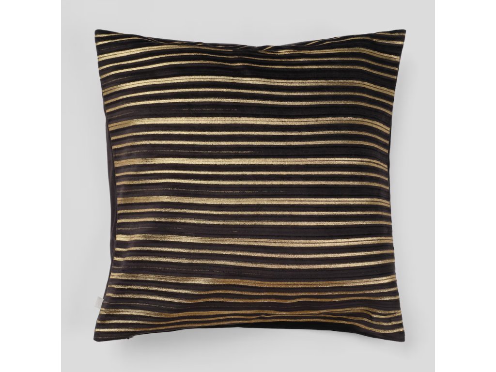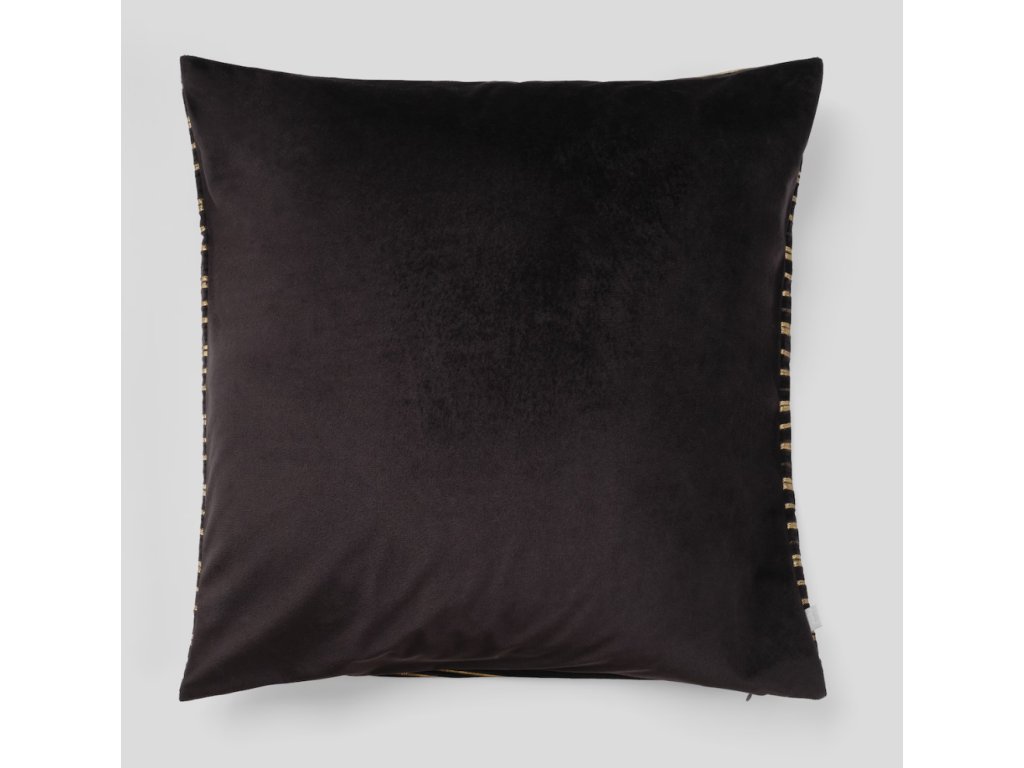 Čierna obliečka so zlatým zdobením s rozmermi 45 cm x 45 cm sa vyznačuje solídnou konštrukciou, ktorá zaisťuje trvácnosť a estetický vzhľad. Osvedčí sa v rôznych interiérových aranžmánoch, dodávajúc im eleganciu a moderný charakter. Vysokokvalitný materiál, z ktorého bola vyrobená, ju robí príjemnou na dotyk, a jej hlboká, intenzívna farba podčiarkuje jej rafinovaný štýl.