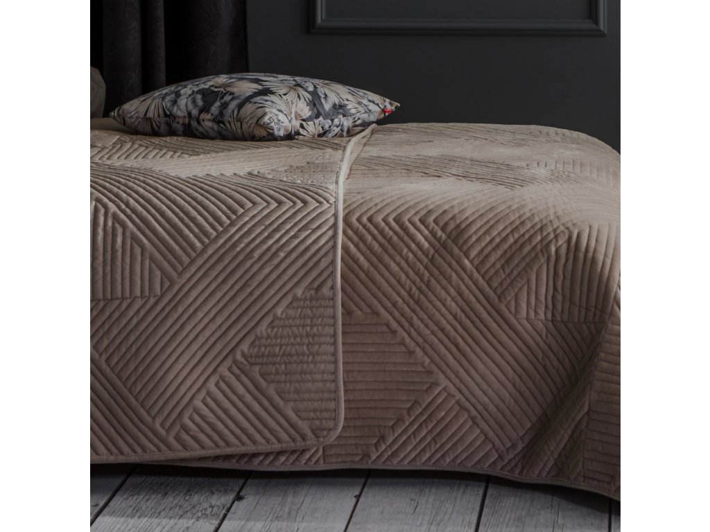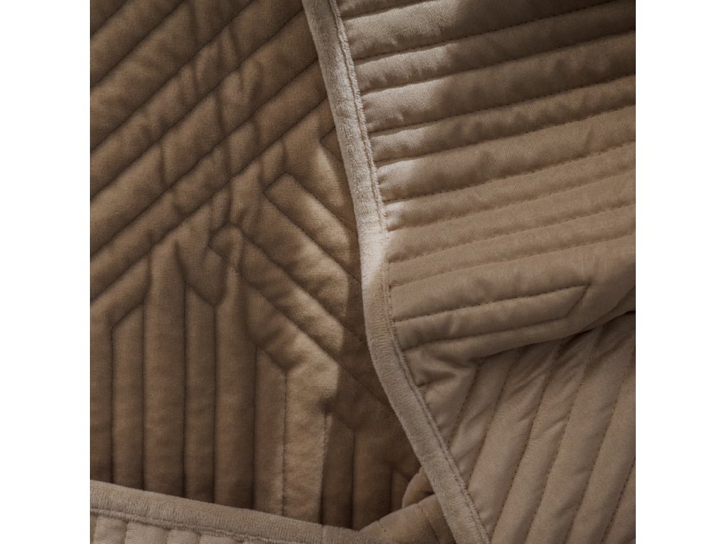 Prikrývka Minister v decentnej béžovej farbe je ideálnou voľbou do elegantnej spálne. Dodá interiéru štýlové vyhotovenie, vďaka čomu bude Vaša posteľ pôsobiť veľmi vkusne, a zároveň sa stane vynikajúcim základom pre kompozíciu ozdobných vankúšov. Predná strana prikrývky je mäkký a veľmi príjemný materiál na dotyk, s textúrou pripomínajúcou elegantný velúr. Z druhej strany je všitá hladká tkanina v rovnakej farbe, pričom celý celok je spojený vkusným prešívaním s moderným geometrickým vzorom. Aby si prikrývka Minister zachovala svoju mäkkosť a perfektný vzhľad, perte ju pri 30 °C, v súlade s inštrukciami uvedenými na všitom štítku.