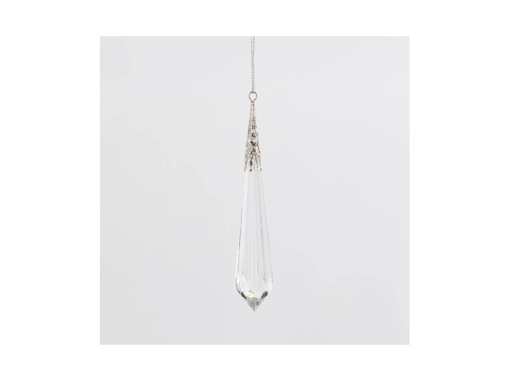 Táto dlhá, elegantná závesná ozdoba v tvare kvapky alebo ľadového cencúľa je dokonalým doplnkom pre vytvorenie luxusného a lesklého akcentu na vianočnom stromčeku. Je navrhnutá v očarujúcom (glamour) štýle, pripomínajúcim krištáľový luster.