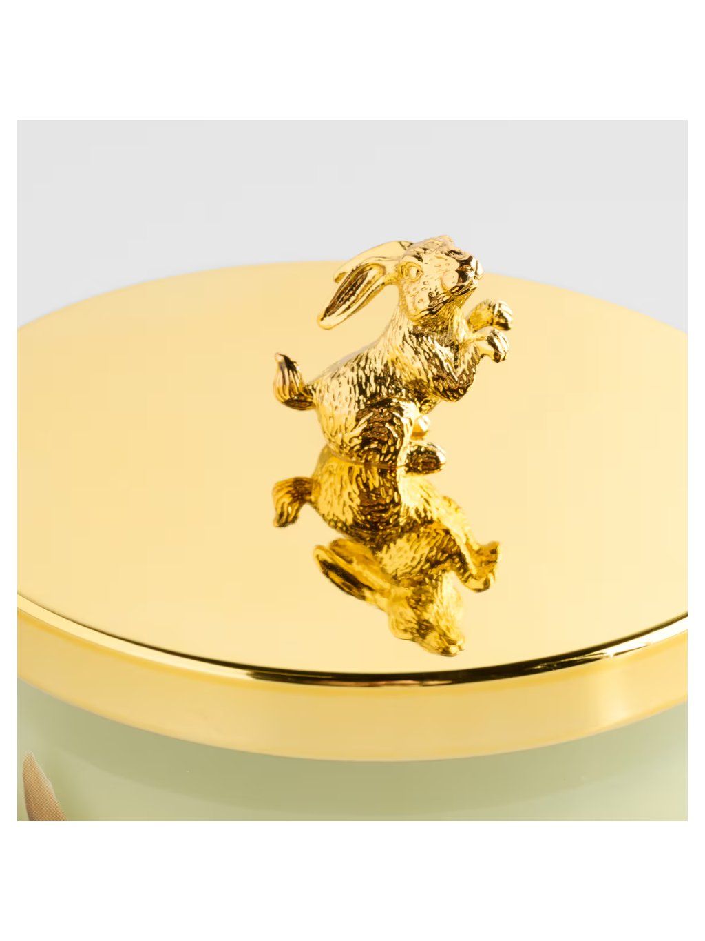 Svetlozelený pastelový odtieň nádoby zdobený motívom králika a jemnými kvetmi v kombinácii so zlatým dekoračným vrchnákom spôsobuje, že sviečka dokonale zapadne do klasických, tradičných aj veľkonočných aranžmánov. Nie je to len vôňa, ale aj efektný akcent, ktorý subtílne ozdobí obývačku, spálňu či sviatočný stôl. Poslúži tiež ako luxusný darček pre blízku osobu, ktorý do domova vnesie výnimočnú náladu.