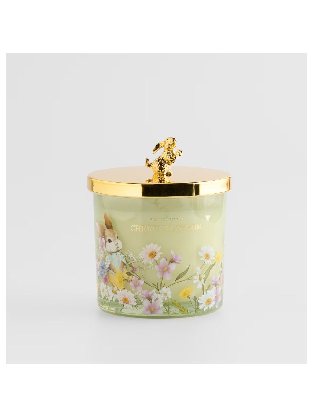 Sklenená nádoba s robustnou hrúbkou a lesklým povrchom zaisťuje trvácnosť a bezpečnosť pri používaní. Použitý vysokokvalitný parafín, obohatený o bezpečnú zmes kvetinových tónov, šíri v domove dlhotrvajúcu vôňu a vytvára príjemnú atmosféru počas každého stretnutia. Vrchnák vyrobený z metalického pozláteného kovu chráni arómu, zatiaľ čo figúrka králika slúži ako dodatočná ozdoba.