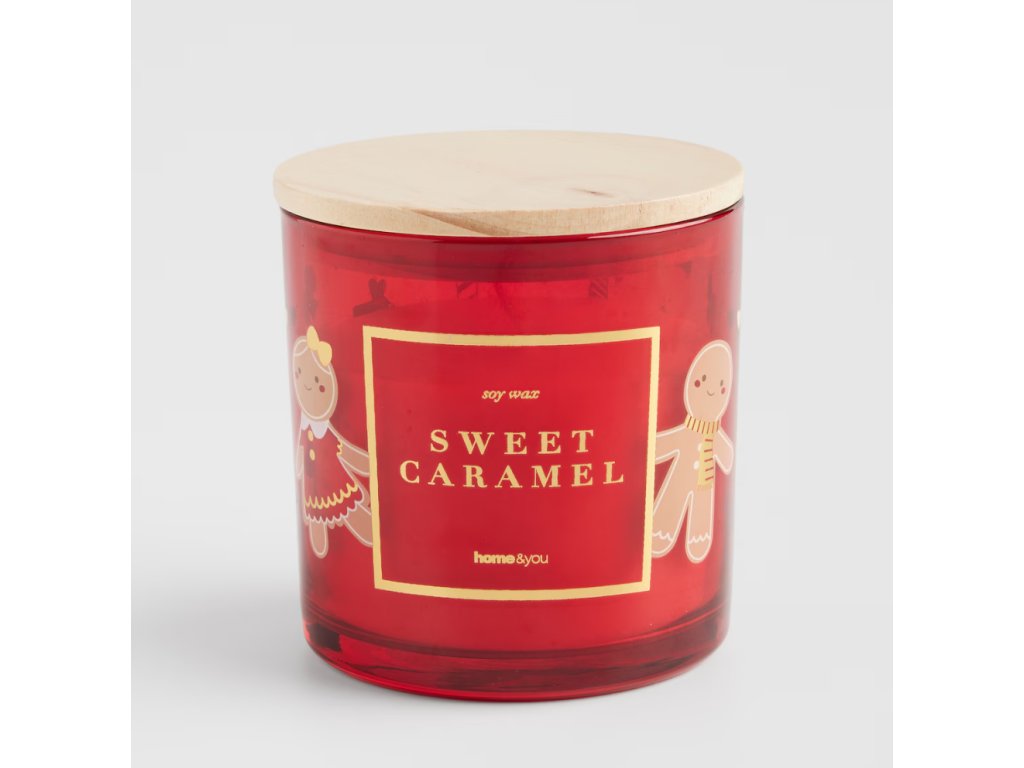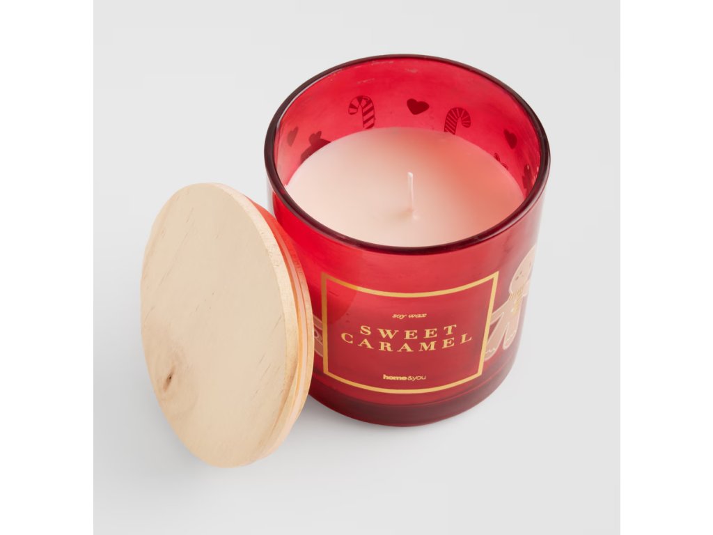 Priveďte do svojho domova sladkú a hrejivú atmosféru vianočného pečenia s vonnnou sviečkou Sweet Caramel. Sviečka je umiestnená v sýtom, lesklom červenom sklenenom pohári, ktorý je ozdobený zlatou potlačou s milým motívom perníkového páru, evokujúcim detskú radosť a tradičný vianočný šarm. Pohár je uzavretý dreveným viečkom, ktoré podčiarkuje útulný štýl. Sviečka vyrobená zo sójového vosku šíri neodolateľnú sladkú arómu, ktorá pripomína karamel a medovníky. S dobou horenia 30 h je táto sviečka ideálna pre navodenie dlhotrvajúcej, teplej atmosféry a je tiež skvelým darčekom pre milovníkov sladkých vôní.