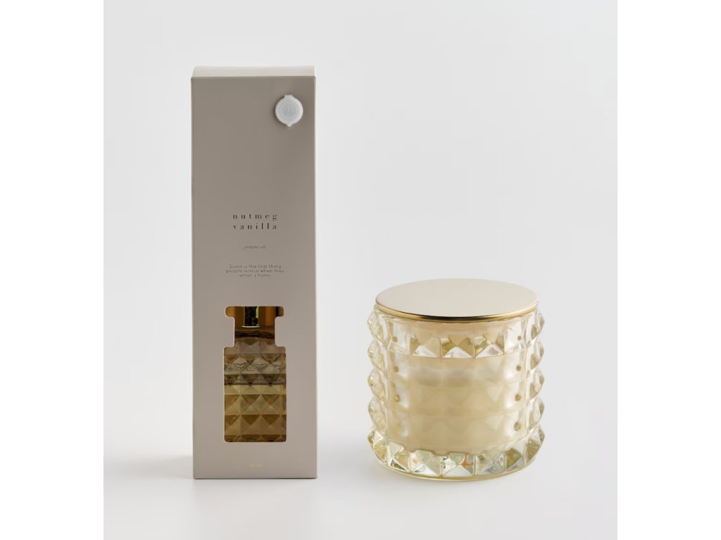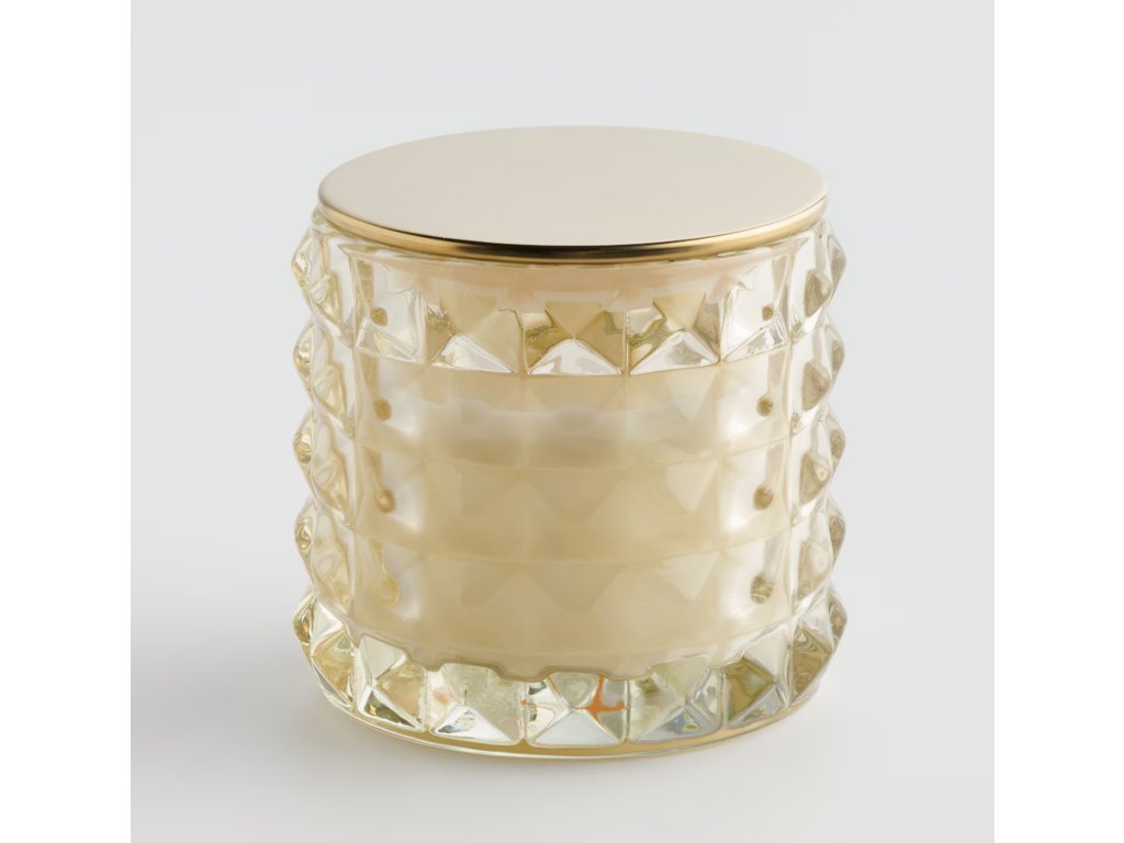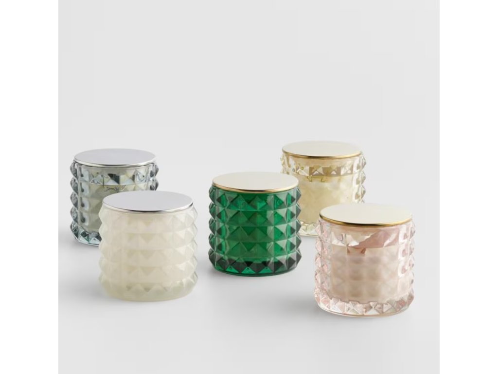 Materiál: farbené sklo, vôňa, kov s povrchovou úpravou, parafín, sójový vosk, syntetický kaučuk
