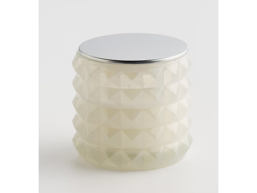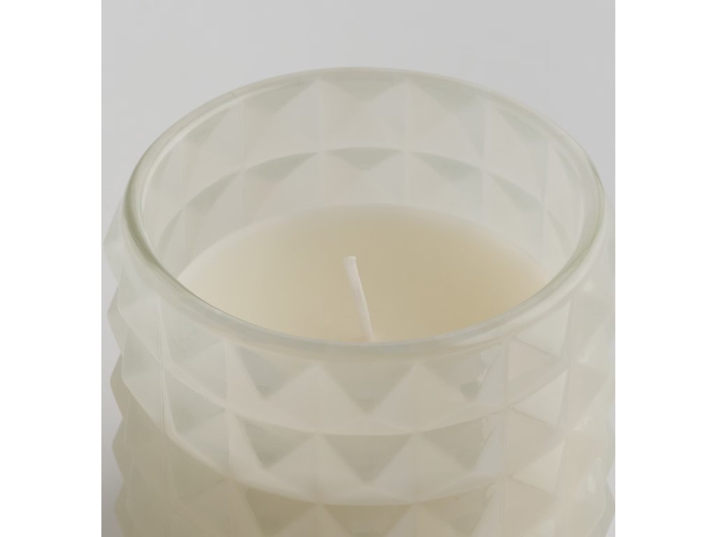 Sviečka vo farbenom bielom skle s priemerom 10 cm je elegantnou a decentnou dekoráciou interiéru. Vyrobená z vysokokvalitnej zmesi parafínu a vosku, zaisťuje dlhotrvajúce a rovnomerné horenie. Jej klasická biela farba a minimalistický dizajn sa dokonale hodia k rôznym štýlom aranžmánov, od moderných po klasické. Je ideálna na vytvorenie útulnej atmosféry v obývacej izbe, spálni alebo počas relaxačného kúpeľa.
