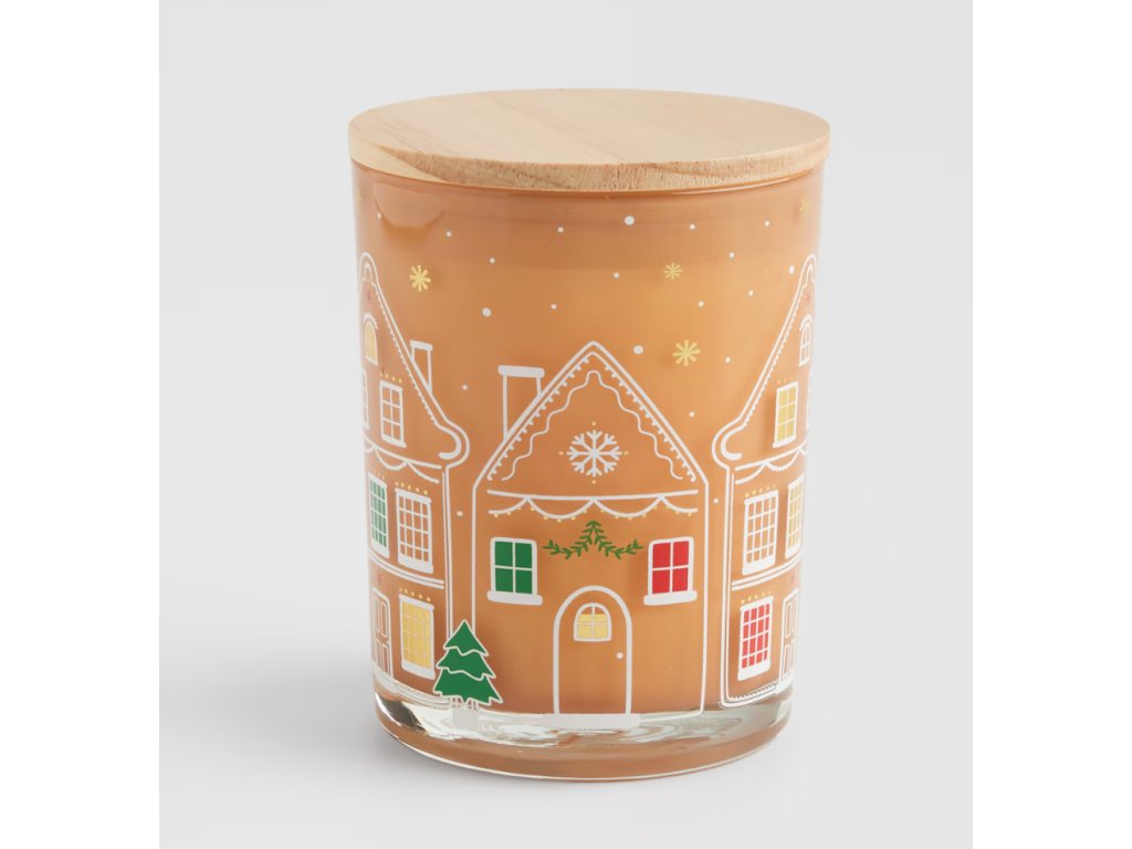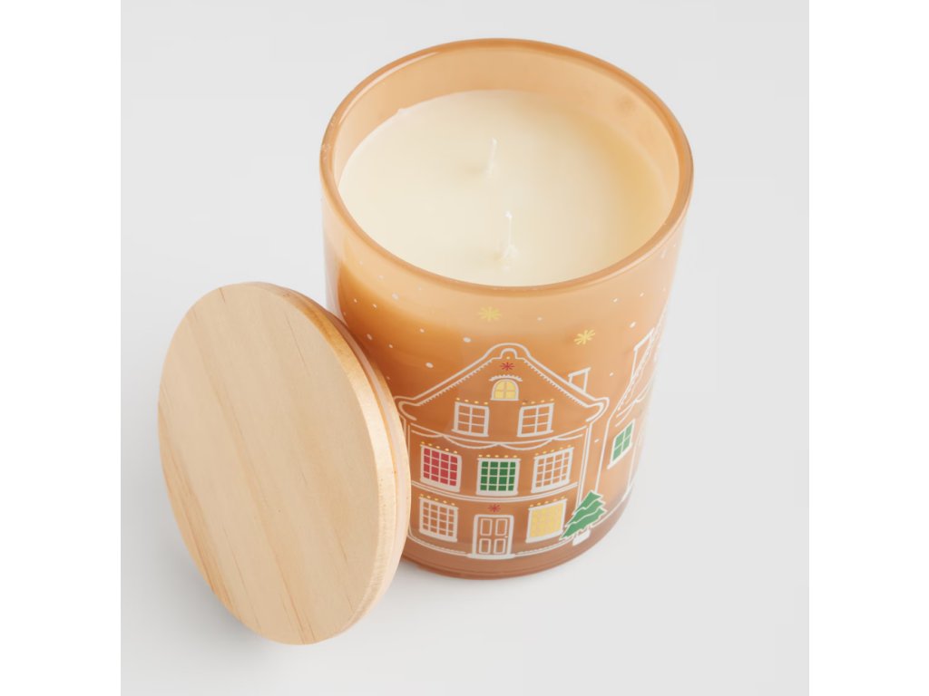 Zahaľte svoj domov do hrejivej korenistej arómy s touto rozkošnou vonnou sviečkou. Je umiestnená v sklenenom pohári béžovej farby, ktorý je vďaka motívu perníkových domčekov s bielou „polevou“ dokonalou vianočnou dekoráciou. Sviečka vyrobená zo zmesi parafínu a sójového vosku prinesie vôňu medovníčkov priamo do vášho interiéru. Pohár je uzavretý dreveným viečkom, ktoré podčiarkuje jej tradičný štýl. S dobou horenia 50 h je táto sviečka ideálnym spoločníkom na dlhé zimné večery, pričom šíri vianočné teplo a útulnú atmosféru.