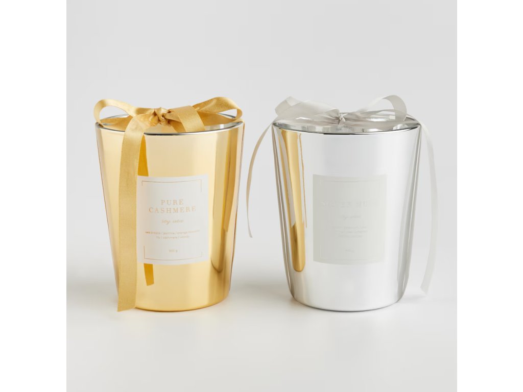 V komplete sa nachádza jedna veľká vonná sviečka s ideálnou kapacitou pre väčšie priestory, vybavená dekoratívnym obalom zo zlatého skla. Sójový vosk a parafín sú spojené, aby zabezpečili intenzitu vône a estetický vzhľad sviečky počas horenia. Každý detail bol navrhnutý s ohľadom na podčiarknutie sofistikovanej atmosféry interiéru.