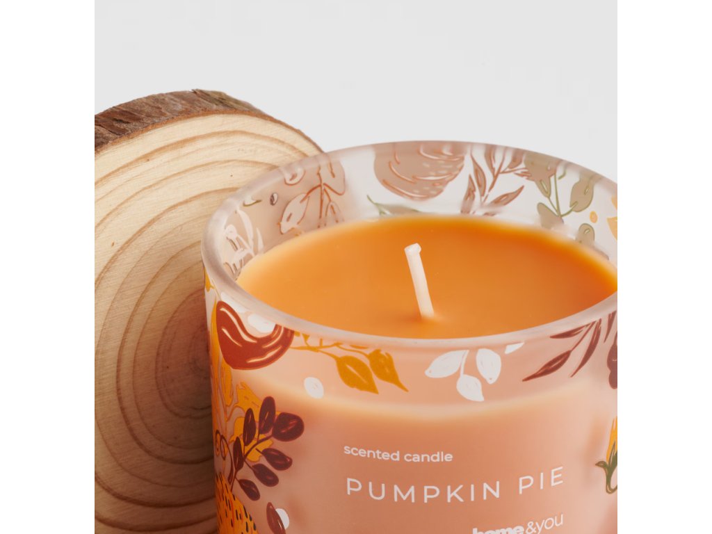 Voňavá sviečka z parafínu a sójového vosku v oranžovej farbe, v sklenenej nádobe rozptýli príjemnú vôňu a vytvorí v interiéri teplú a náladovú atmosféru.
