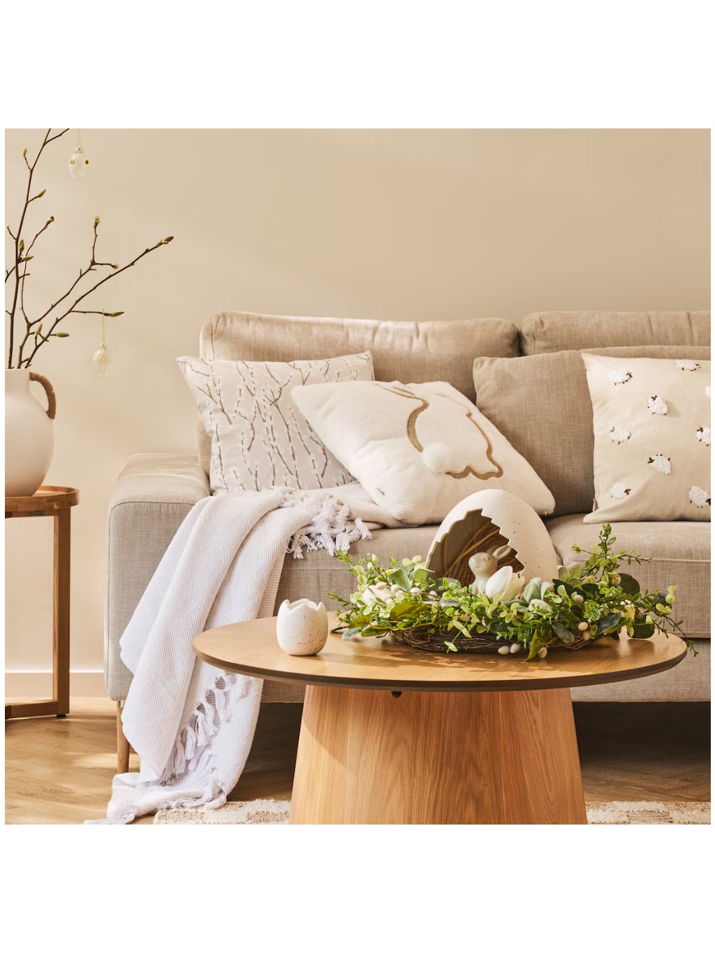 Hľadáte doplnok, ktorý spojí jemnosť s modernou eleganciou? Vyšívaná obliečka na vankúš Freno s motívom králika je ideálnym spôsobom, ako zútulniť vašu obývačku alebo spálňu. Čistý biely podklad v kombinácii s detailnou výšivkou a zlatými akcentmi okamžite rozžiari každé kreslo či pohovku.