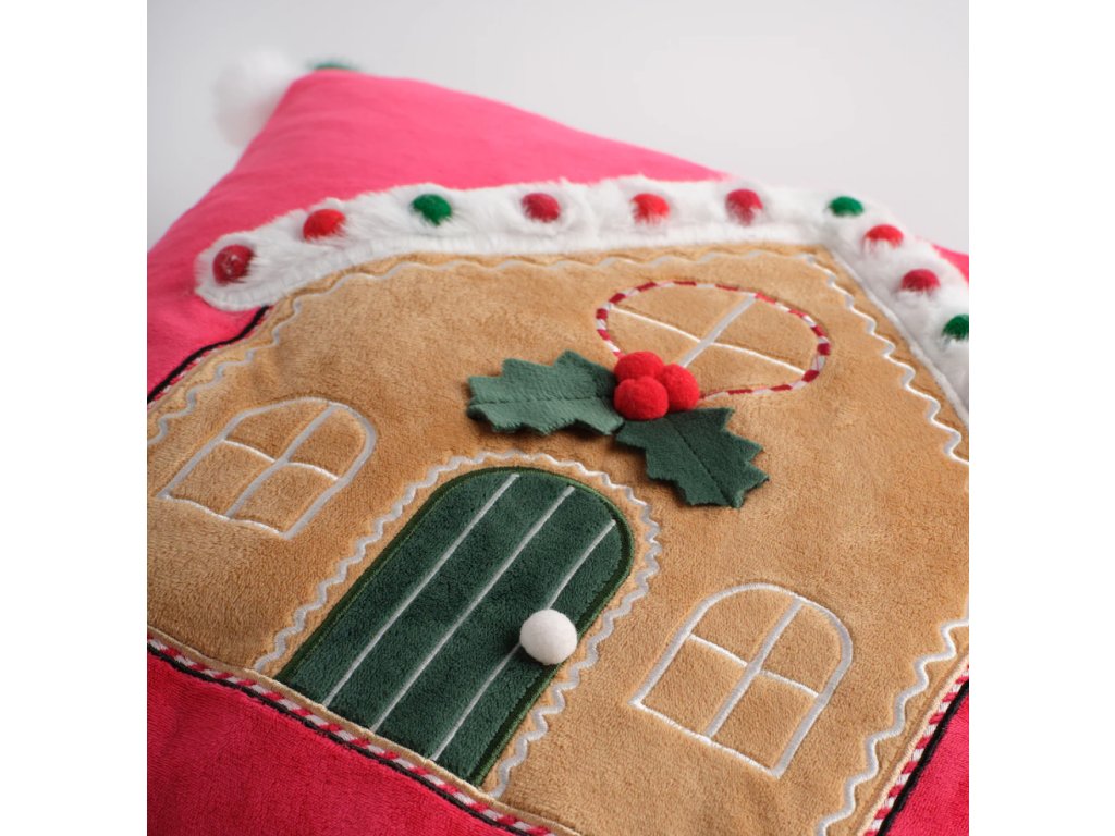 Intenzívna červená farba a ručne vyšívané sviatočné motívy dodávajú obliečke neopakovateľný, radostný charakter. Detaily v podobe farebných strapcov (pomponov) na rohoch a starostlivo vyhotovených aplikácií zaručujú, že produkt sa stane skutočnou ozdobou sedačky, kresla alebo postele – tak v minimalistických, ako aj v klasických aranžmánoch. Obliečka Ginnohouse sa dokonale hodí k iným sviatočným textíliám a je vždy skvelým darčekom pre blízkych.