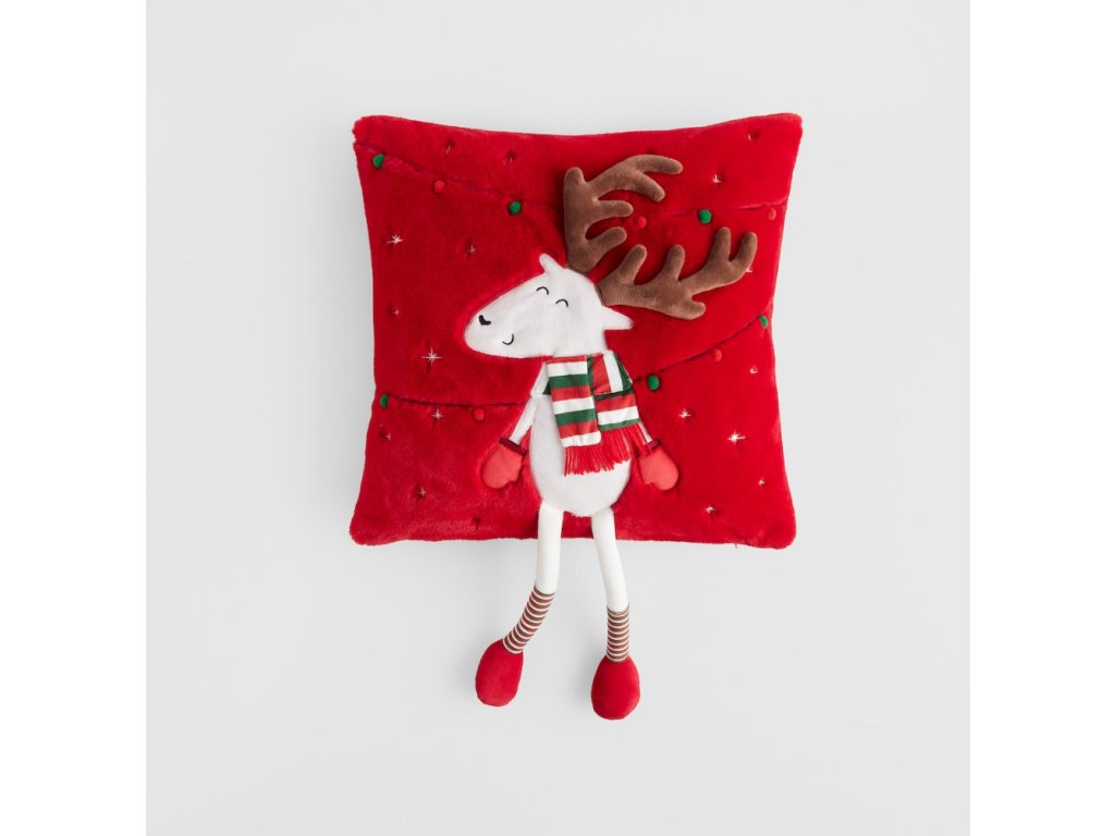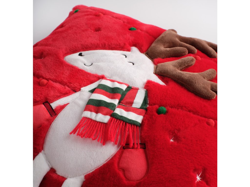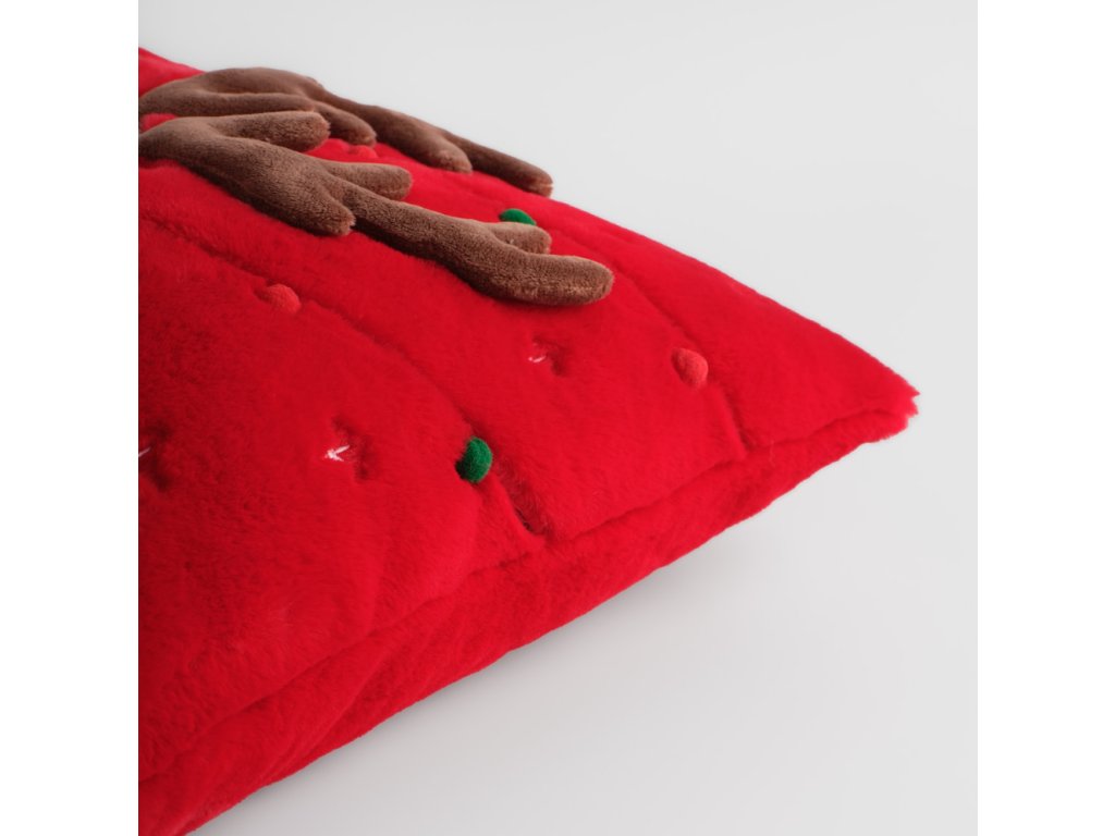 Intenzívna červená farba, vyšívané sviatočné motívy a vypuklá aplikácia so sobom robia túto obliečku výnimočným rámom zimných aranžmánov.