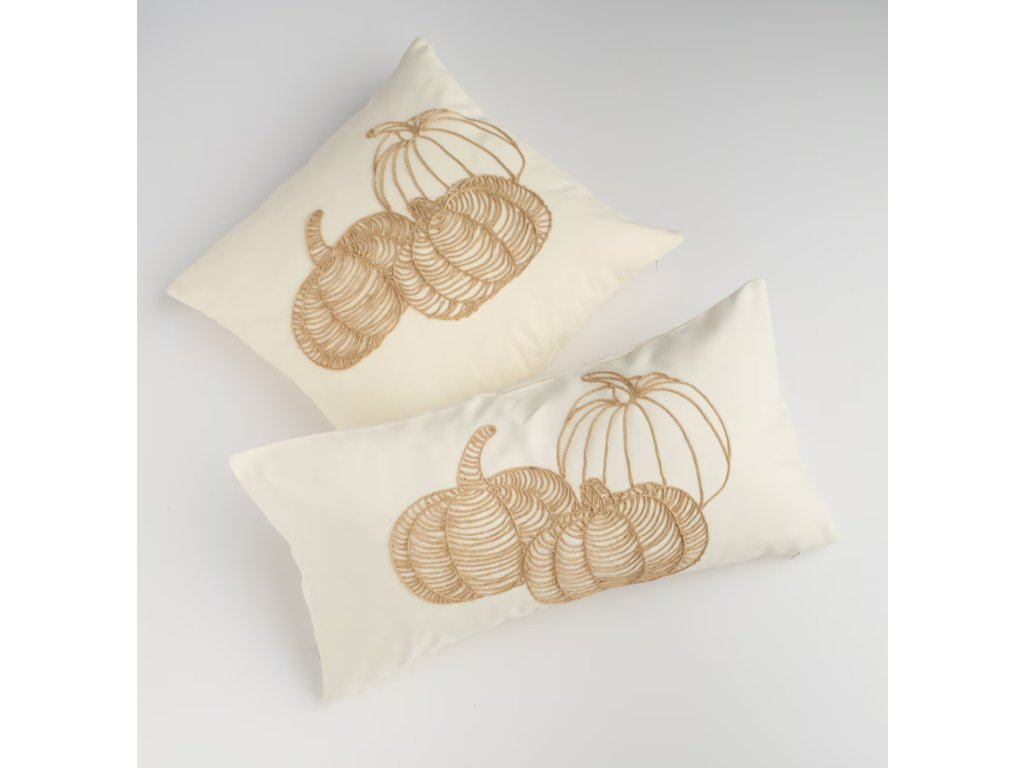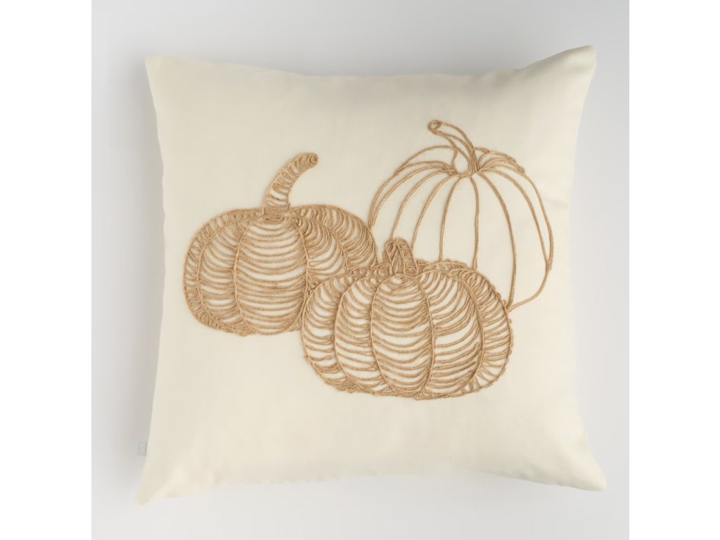 Vyšívaná dekoračná obliečka na vankúš, vyrobená z bavlny a juty v béžovej farbe, ozdobená motívom tekvice, je jedinečným prvkom jesennej výzdoby interiéru. S rozmermi 45 x 45 cm spája prírodné materiály s jemnou výšivkou a dodáva útulnosť a rustikálny charakter každej miestnosti.