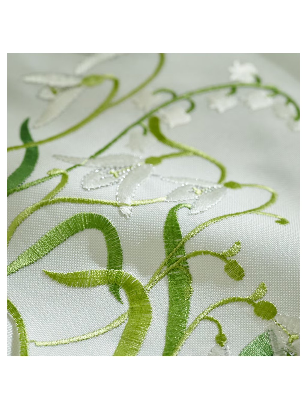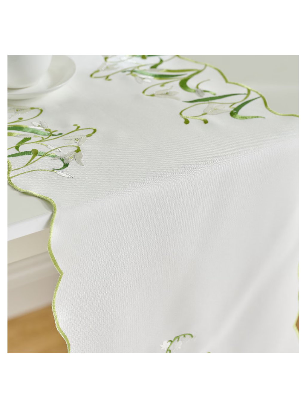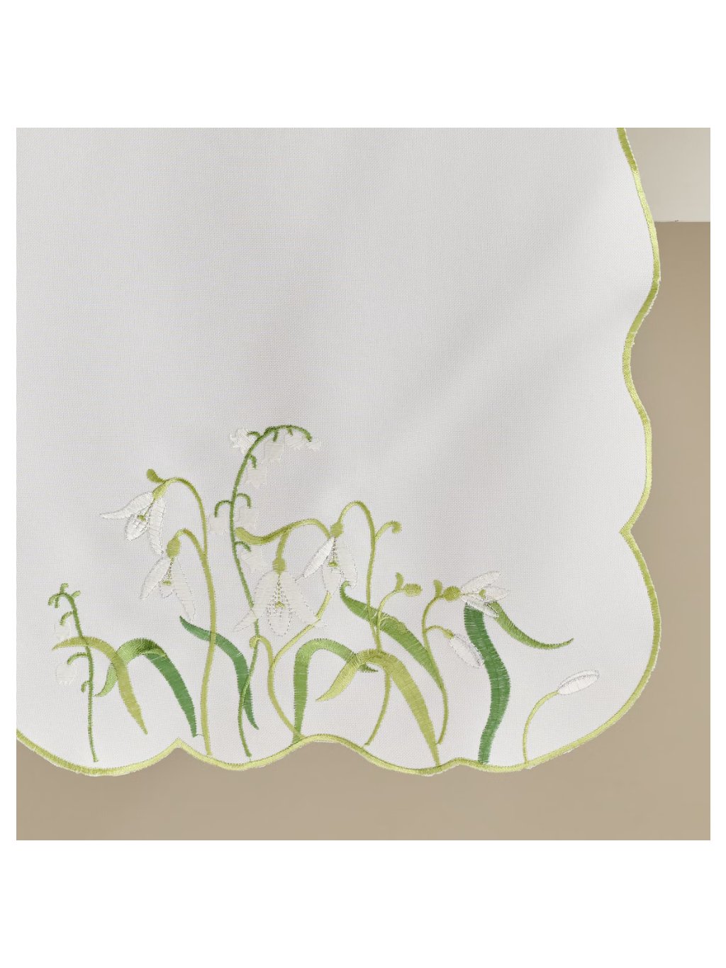 Jemná štruktúra materiálu podčiarkuje elegantné vyšívané zakončenie a poskytuje decentnú dekoráciu pre každý stôl.
