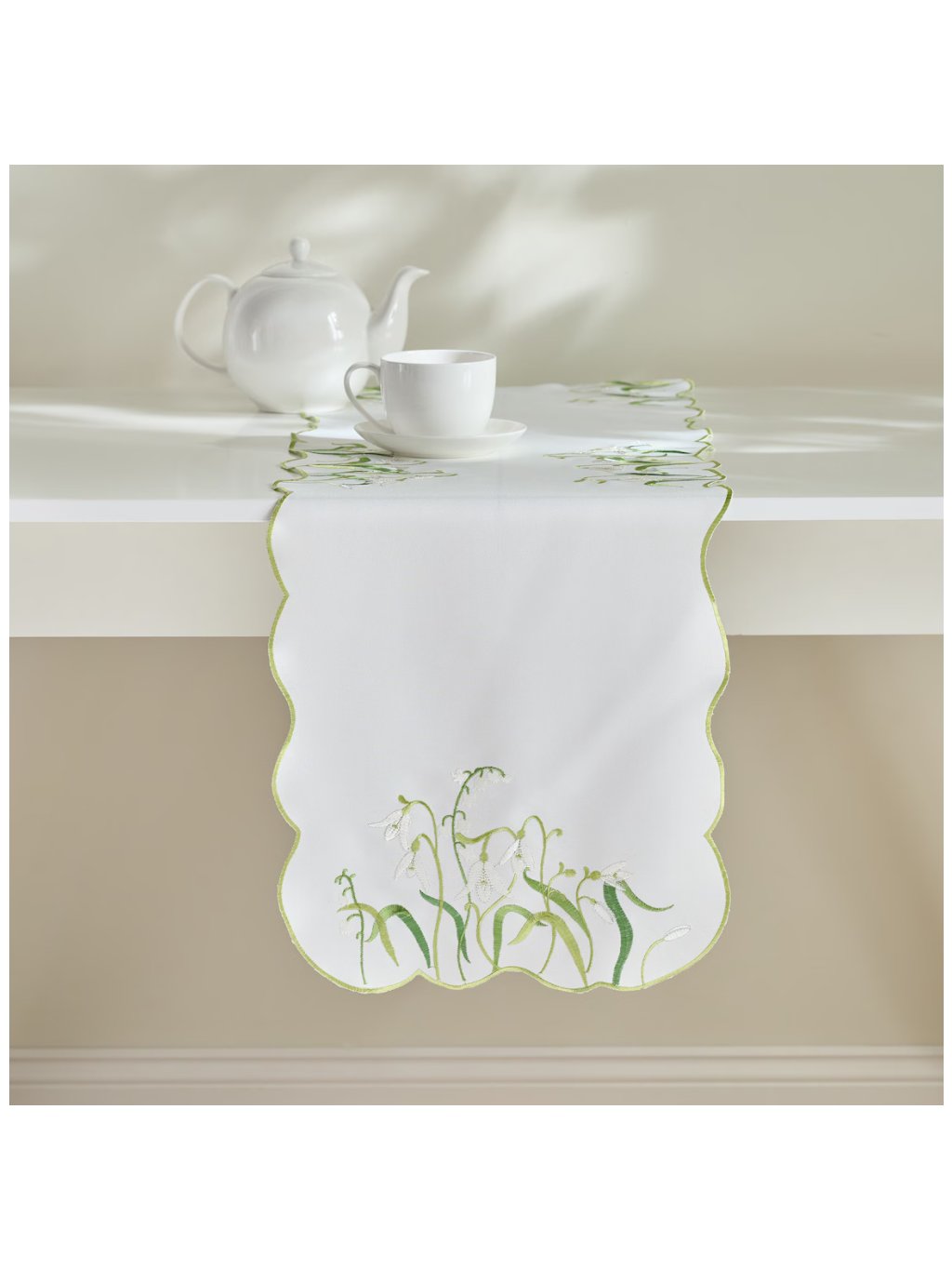 Do akých aranžmánov sa tento behúň hodí? Vďaka univerzálnej bielej farbe a jemným výšivkám sa behúň hodí do klasických aj moderných interiérov.
