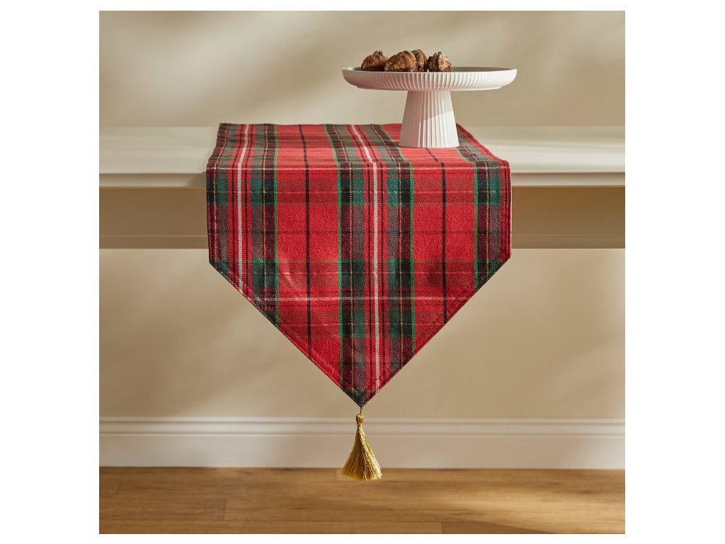 Hodí sa behúň k iným textíliám? Klasický vzor a odtiene sa dokonale komponujú s obrúskami a inými sviatočnými doplnkami z kolekcie.