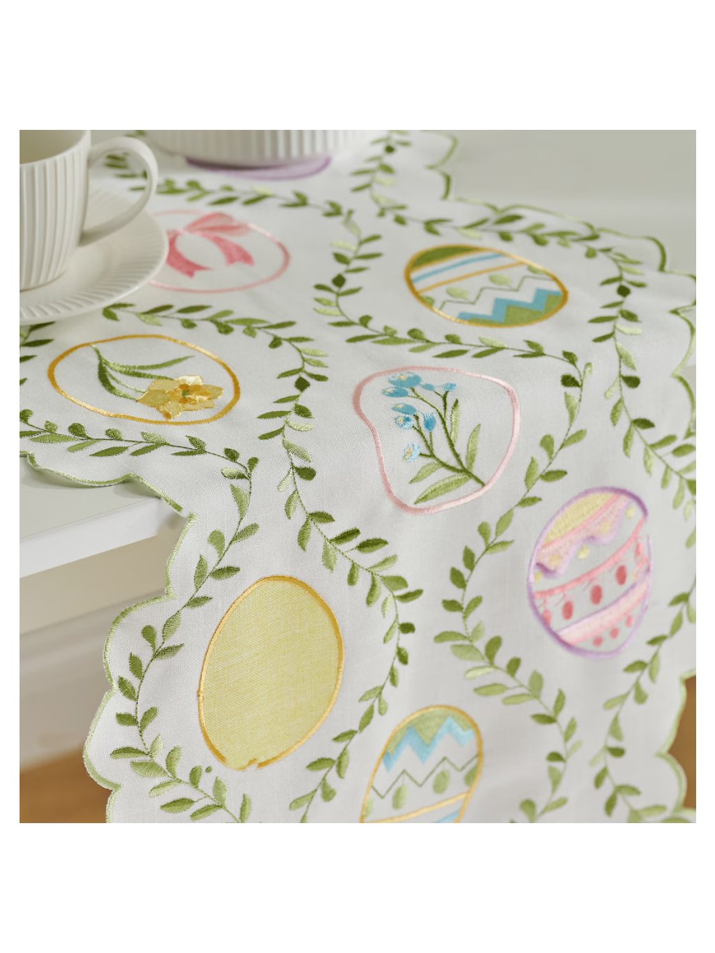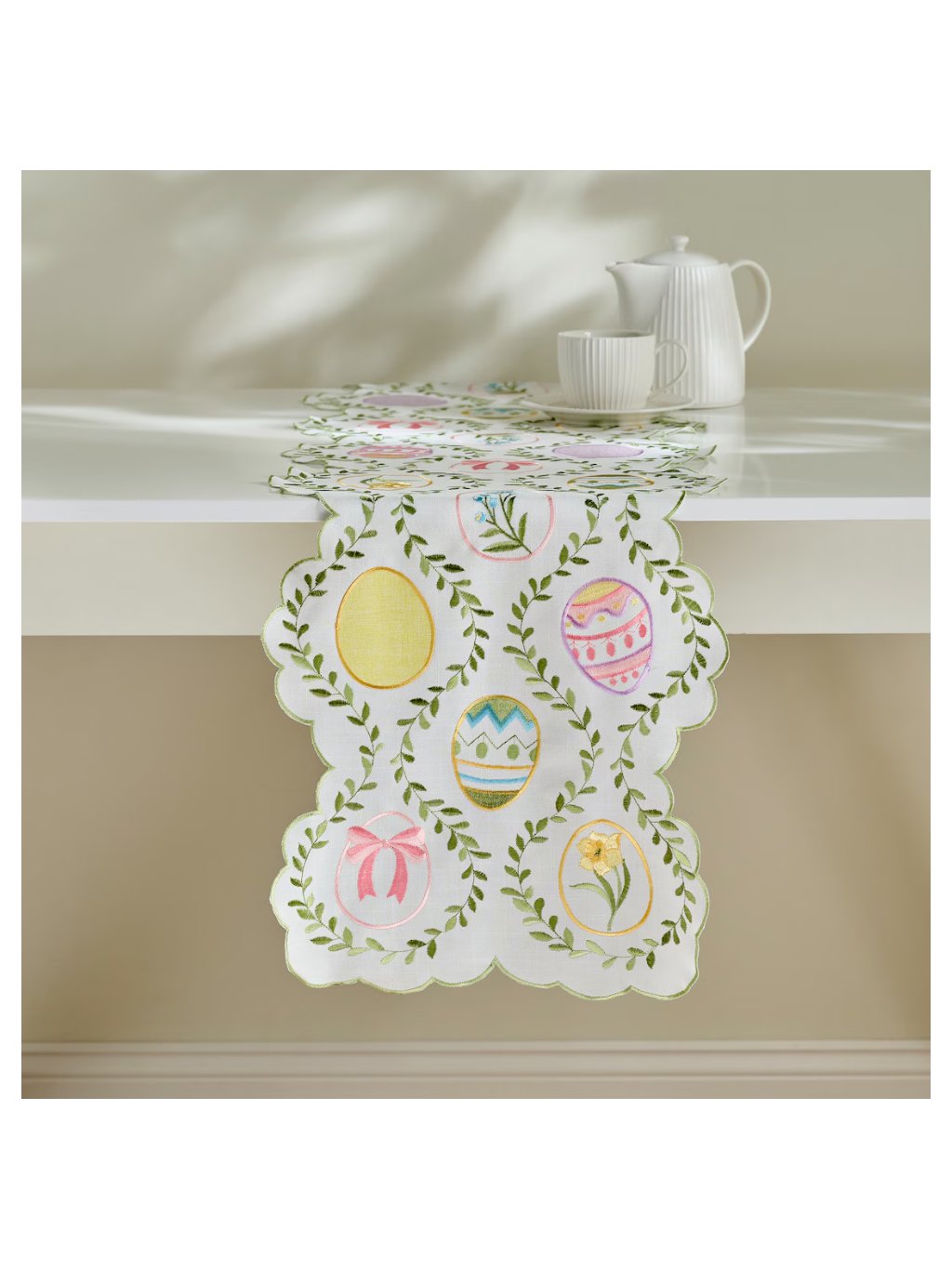 Tradičný štýl s moderným nádychom: Behúň Pisani je kvintesenciou tradície. Viacfarebný, výrazný vyšívaný vzor s motívom vajíčka dokonale zapadá do sviatočnej veľkonočnej dekorácie stola.