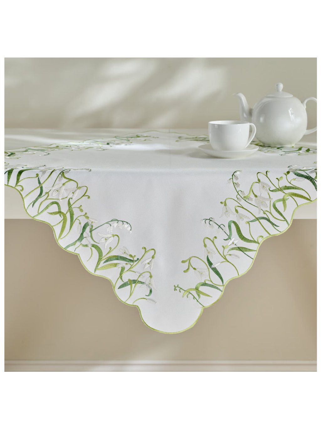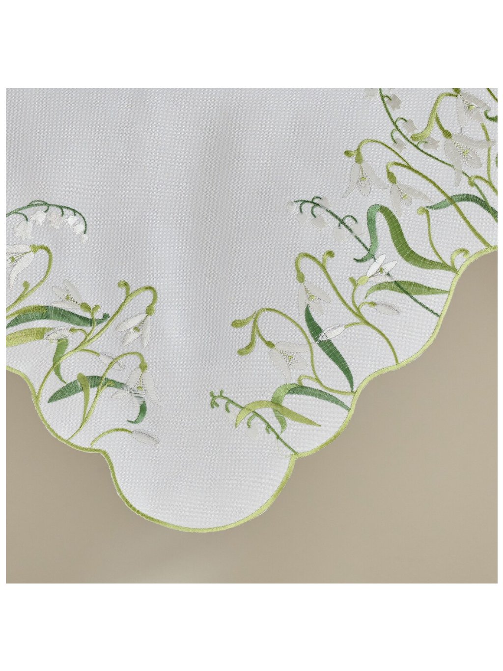Biela farba v kombinácii s elegantným vyšívaným kvetinovým motívom zaručuje, že vyšívaný obrúsok Convelio dokonale zapadne do klasických aj moderných aranžmánov.