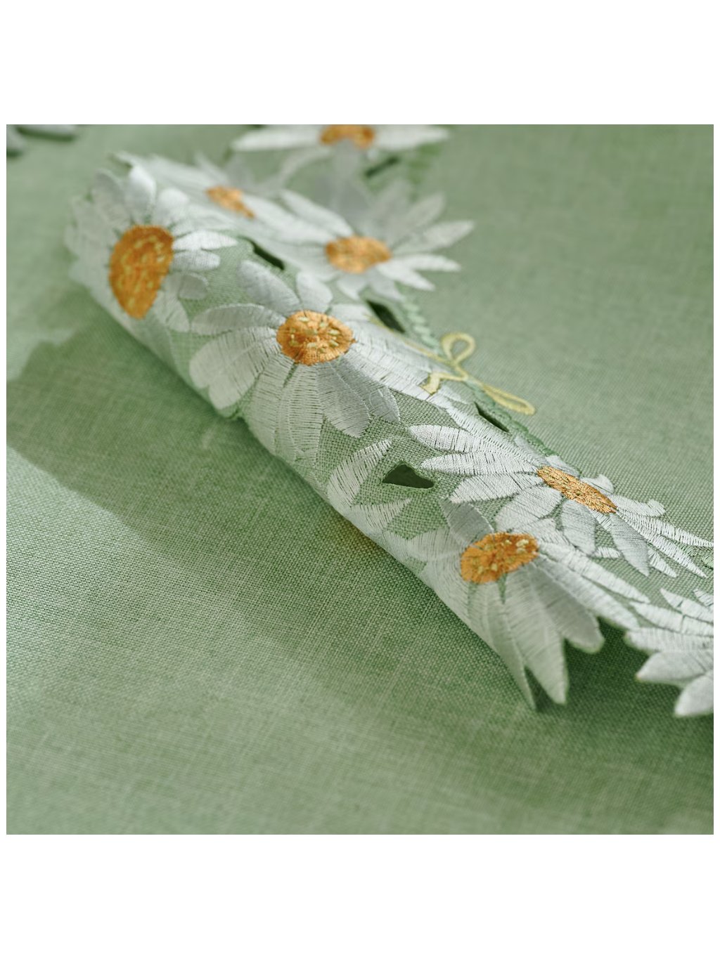 Mätový odtieň a jemná kvetinová výšivka dodávajú obrúsku Mintsy rafinovaný a svieži vzhľad.