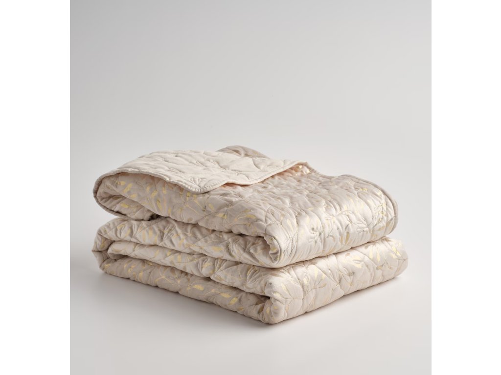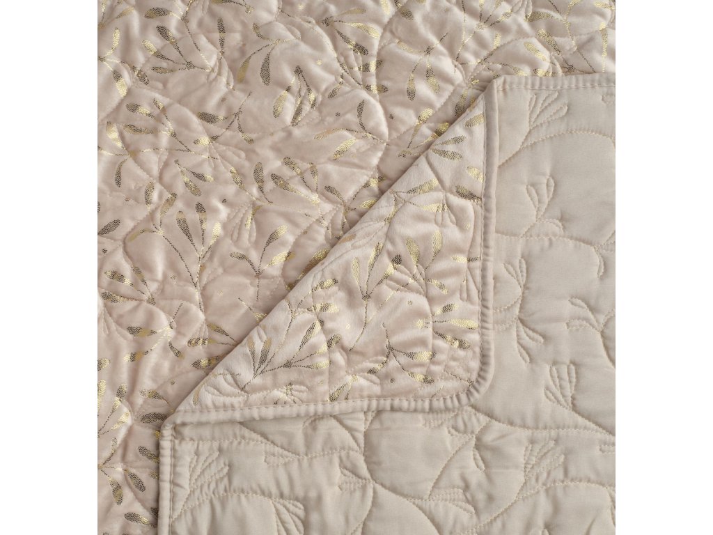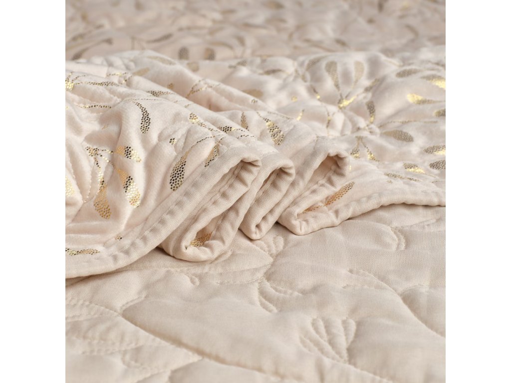 Prehoz Mistelo očarí decentnou béžovou farbou, ktorá vnesie do vašej spálne atmosféru pokoja a relaxu. Zlaté, rastlinné vzory mu dodávajú eleganciu a šarm, ideálne sa hodiace do sviatočnej atmosféry. Prehoz sa dokonale hodí do interiérov zariadených v klasickom, modernom, ako aj glamour štýle. Je to taktiež vynikajúci nápad na darček pre blízku osobu.