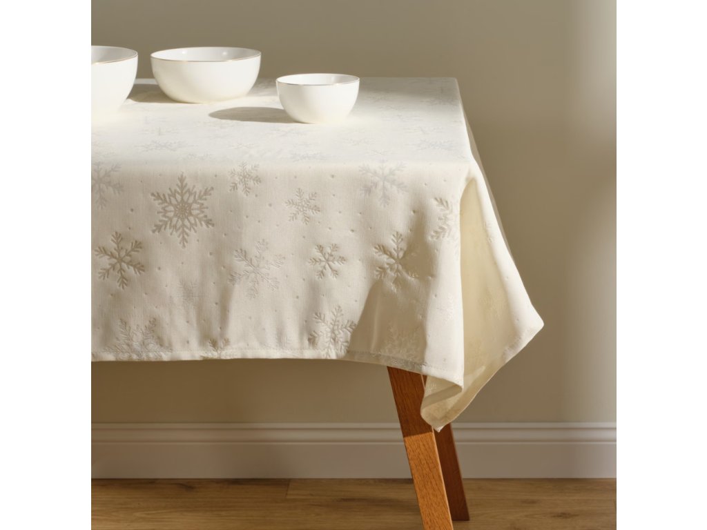 Predstavte si magickú, sviatočnú atmosféru vo vašom dome. Žakárový obrus Preciosita zahalí váš stôl eleganciou a harmóniou, vytvárajúc ideálnu scenériu pre stretnutia s blízkymi. Jemný vzor snehových vločiek, trblietajúci sa vo svetle lampášov, dodá lesk a teplo každému jedlu, vnášajúc výnimočnú, sviatočnú náladu.