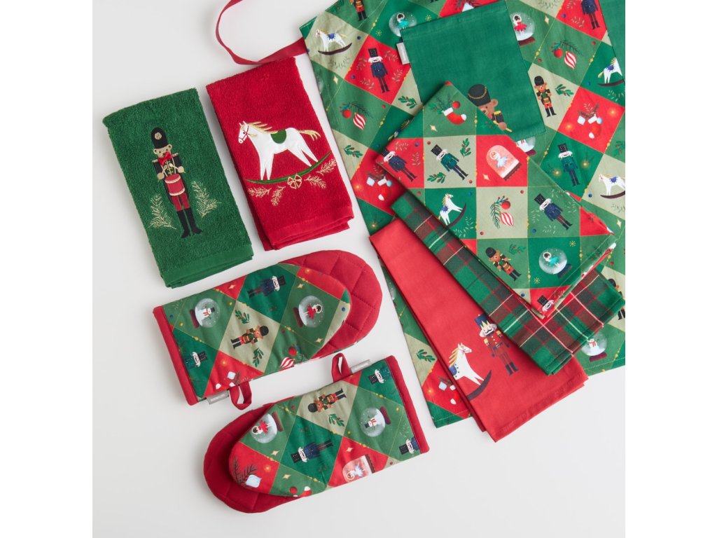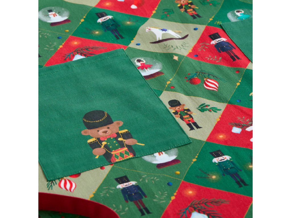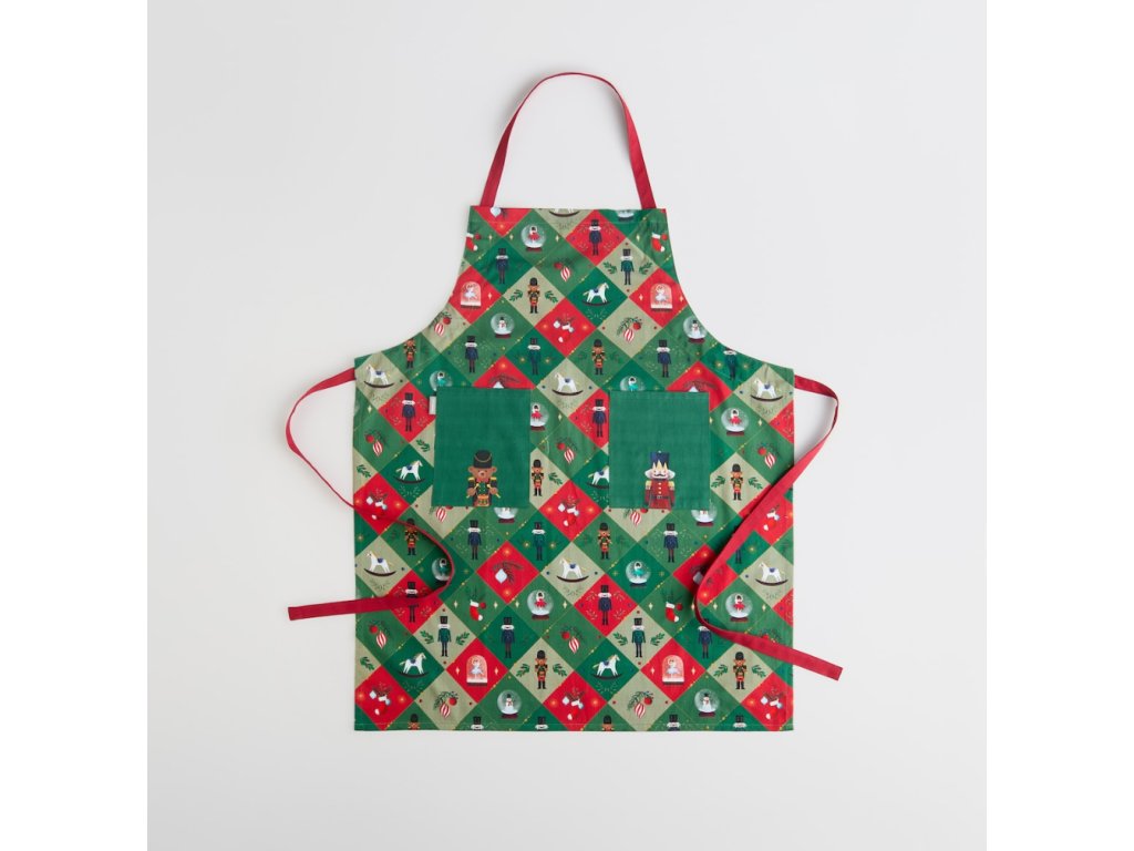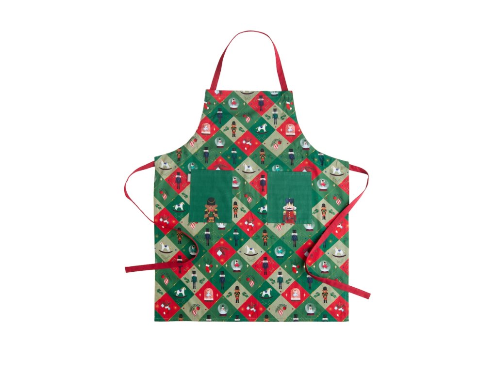 Výrazný, sviatočný vzor v odtieňoch zelenej, červenej a béžovej vytvára výnimočnú atmosféru v každej kuchyni. Motívy kosoštvorcov s vojačikmi (Luskáčikmi), snehuliakmi alebo cukrovými paličkami zaručujú, že zástera Nutpatcher zapadne do tradičných, ako aj moderných aranžmánov. Skvele poslúži ako funkčný akcent počas rodinných stretnutí a ako nápad na praktický darček, ktorý podčiarkne kúzlo vianočných príprav.