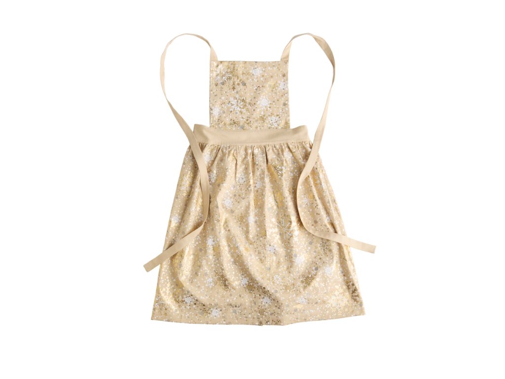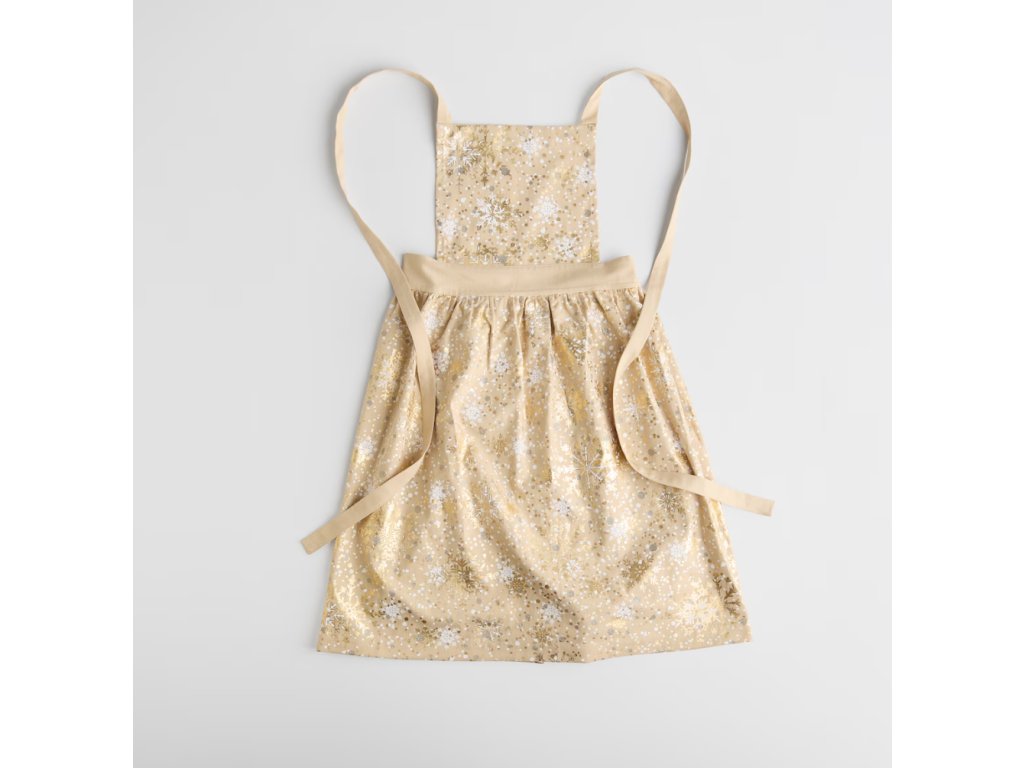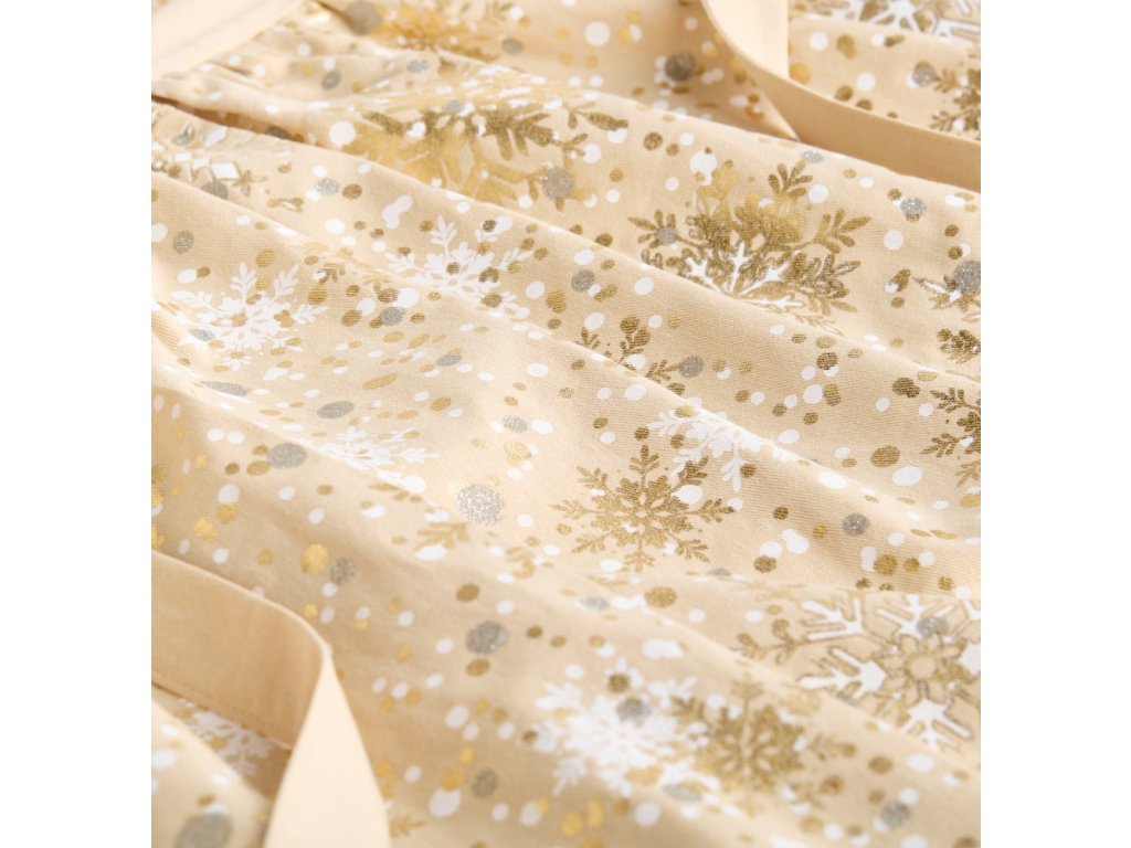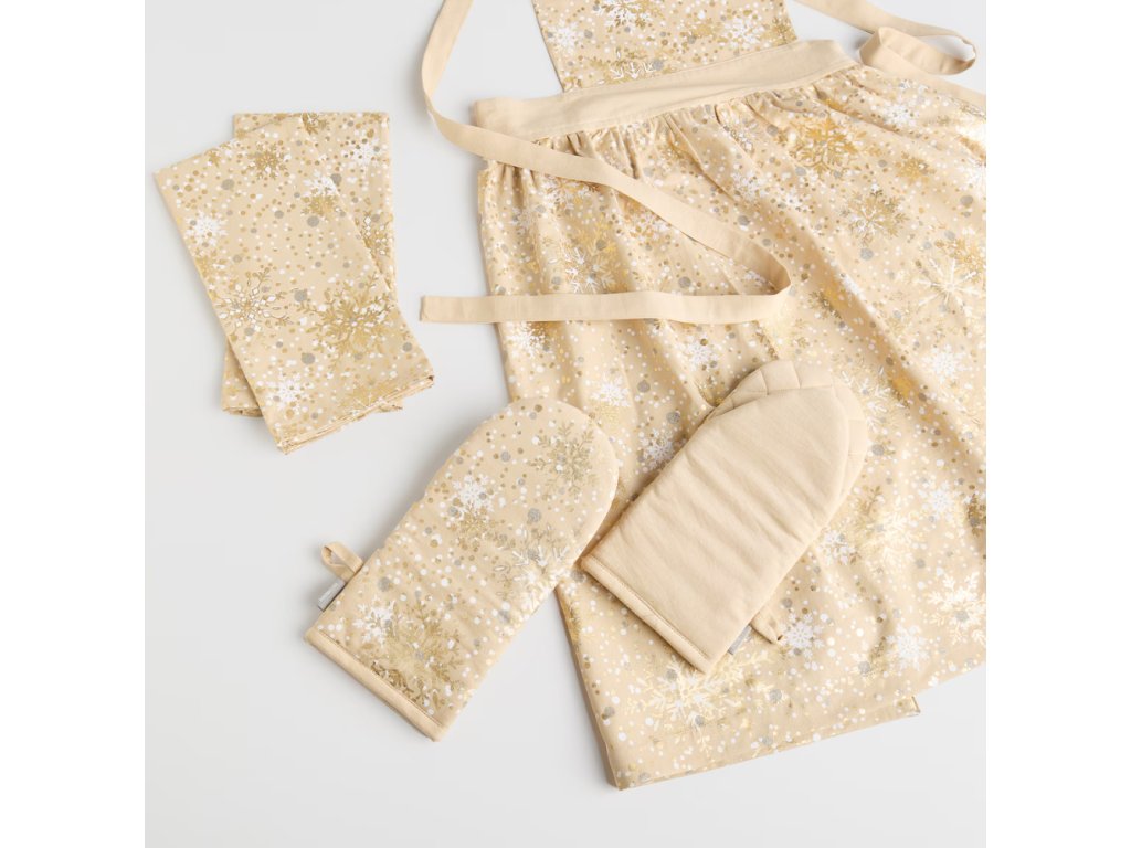 Sviatočný, decentný dizajn v pastelových odtieňoch béžovej so zlatými a bielymi snehovými vločkami a bodkami spôsobuje, že zástera Snowf sa krásne vyníma v každej kuchyni. Jemný lesk a starostlivé vyhotovenie jej dodávajú eleganciu a univerzálna farebná schéma dokonale ladí s modernými a klasickými interiérmi. Je to ideálna voľba pre osoby, ktoré radi podčiarknu výnimočnú atmosféru sviatočných príprav. Hodí sa tiež ako štýlový darček pre blízku osobu.