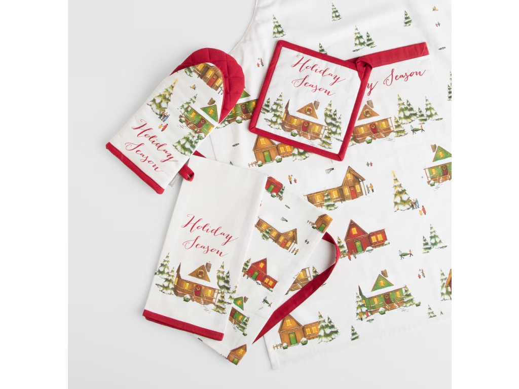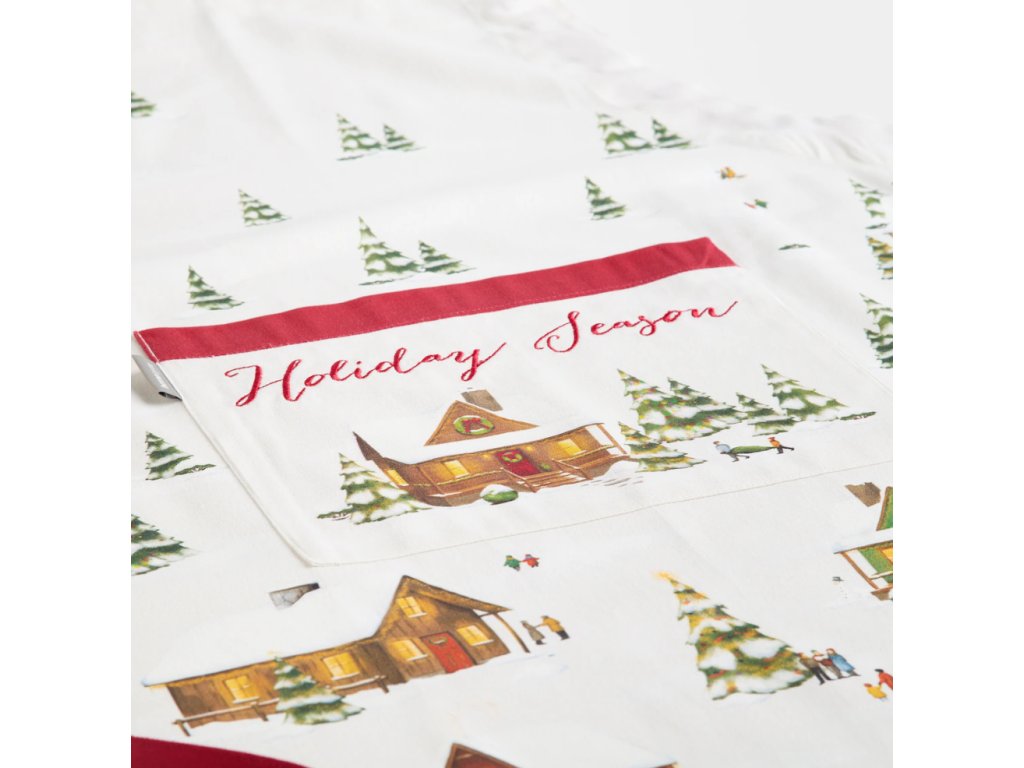 Biela tkanina ozdobená sviatočnou potlačou domčekov a vianočných stromčekov vnáša do kuchyne výnimočnú atmosféru. Červené detaily a vrecko s nápisom "Holiday Season" robia zo zástery winhurst ideálnu voľbu do interiérov v klasickom, škandinávskom a modernom štýle. Môže byť tiež originálnym nápadom na darček pre blízku osobu alebo praktickým doplnkom k súprave kuchynských textílií.