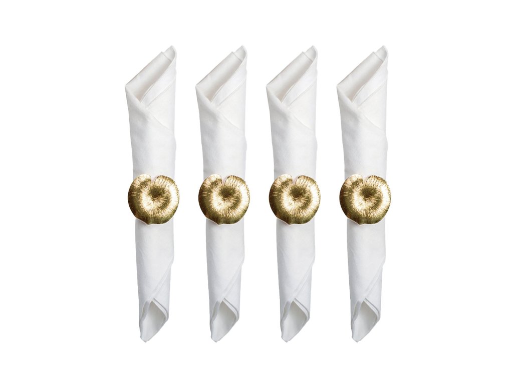 Zlaté krúžky na obrúsky (s motívom) lekna – súprava 4 kusov