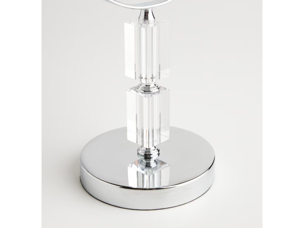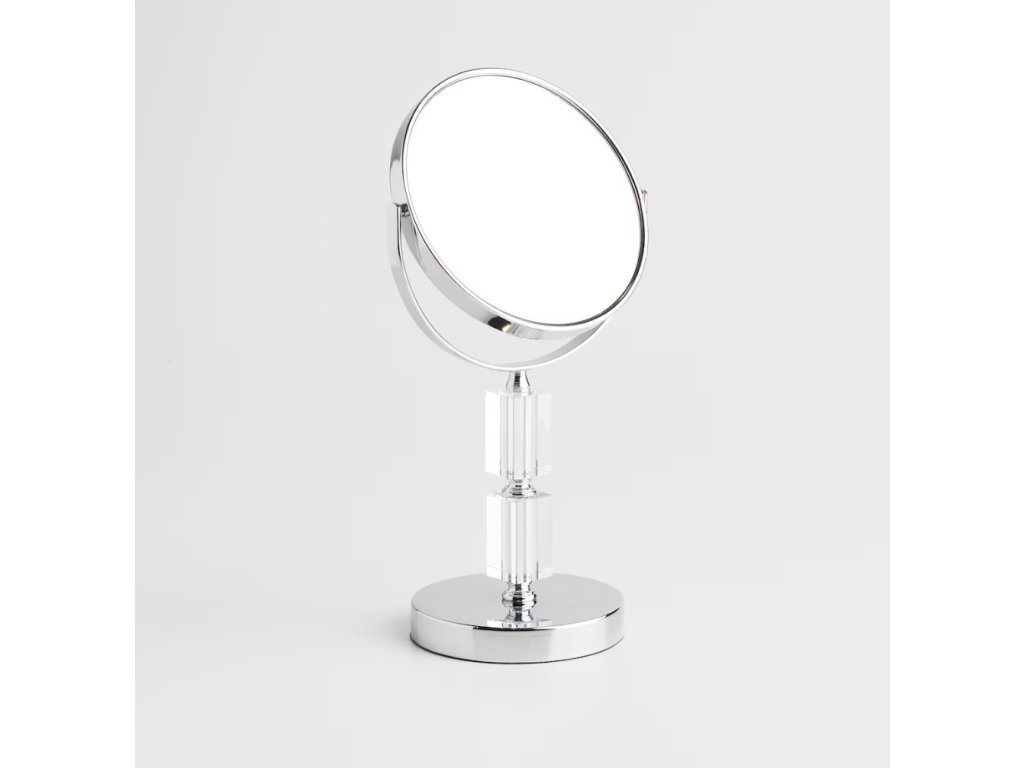 Zrkadlo v striebornej farbe je elegantný doplnok do každého priestoru. Je vybavené 5x zväčšením, ideálne na precízny make-up alebo starostlivosť. Jeho subtílny dizajn a funkčnosť ho robia vhodným do moderných kúpeľní a na toaletné stolíky.