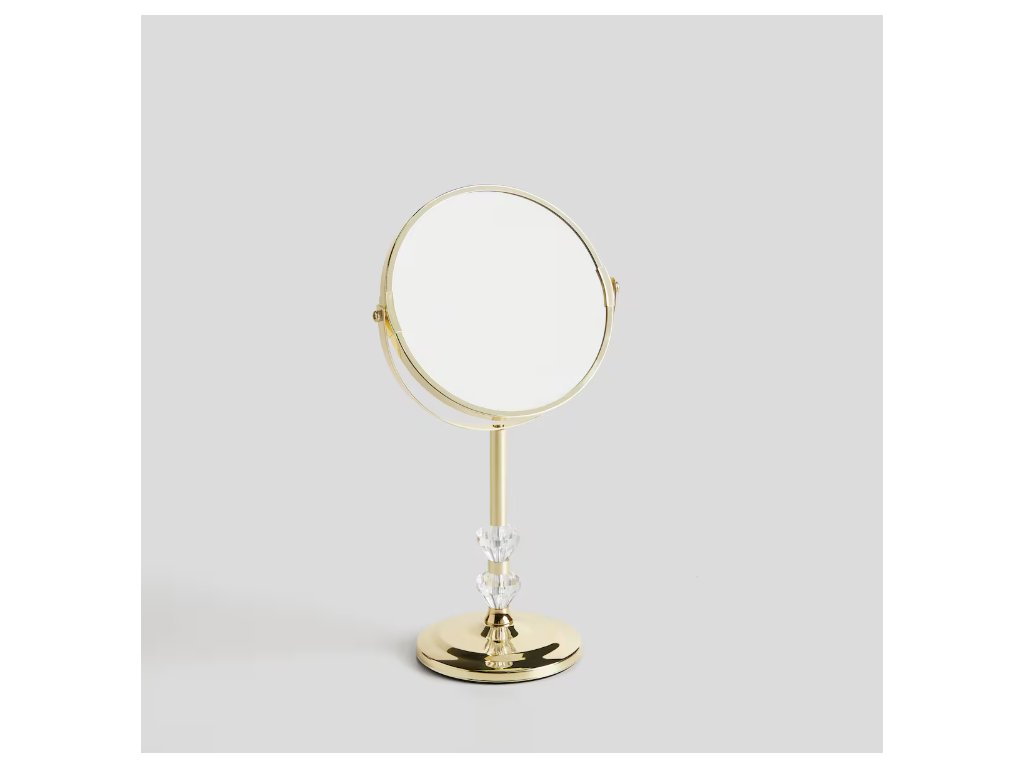 Zrkadlo v zlatej farbe je elegantný a funkčný prvok výzdoby. Je vybavené možnosťou 5x zväčšenia, ideálne na precízny make-up alebo starostlivosť. Jeho moderný dizajn a strieborný odtieň sa dokonale hodia k rôznym štýlom interiérov.