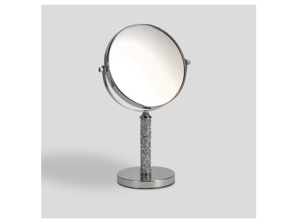 Zrkadlo zo železa, skla a plastu v striebornej farbe je elegantný a funkčný doplnok do interiéru. Je vybavené 5x zväčšením, ideálne na precízny make-up alebo starostlivosť. Jeho moderný dizajn a strieborný odtieň sa hodia k rôznym štýlom kúpeľní a toaletných stolíkov.
