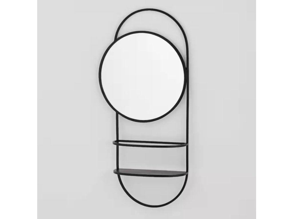Toto elegantné okrúhle zrkadlo s policou v čiernej farbe je ideálnym riešením pre tých, ktorí hľadajú funkčný a štýlový doplnok do svojho priestoru. Zrkadlo s lesklou povrchovou úpravou dodáva moderný šarm, zatiaľ čo závesná polica slúži ako praktické miesto na odkladanie kozmetiky, kľúčov alebo šperkov.