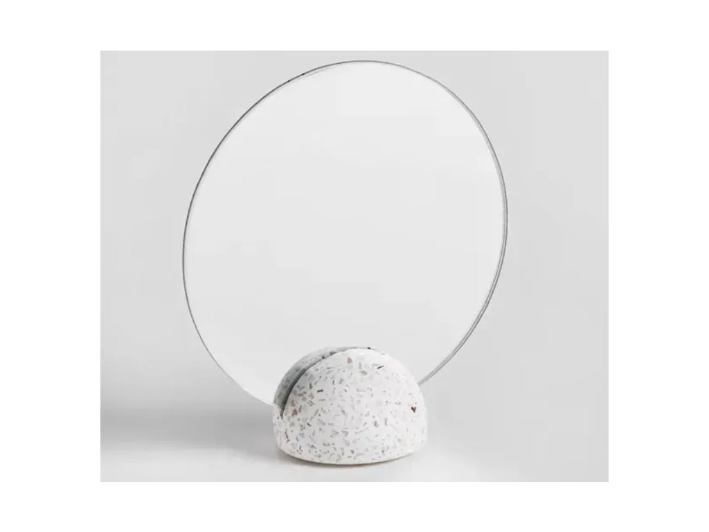 Zrkadlo s kamennou základňou je elegantný a funkčný doplnok do každého interiéru. Kamenná základňa nielenže dodáva výrobku estetický vonkajší vzhľad, ale zabezpečuje aj pevnú konštrukciu. Kompaktná veľkosť zrkadla ho robí ideálnym na umiestnenie na polici, komode alebo písacom stole, čo umožňuje rýchlu úpravu vzhľadu pred odchodom. Biela farba zrkadla dodáva eleganciu a ladí s rôznymi štýlmi interiéru, od moderného po klasický.
