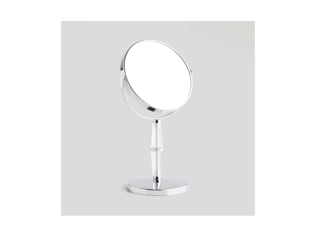 Strieborné obojstranné zväčšovacie kozmetické zrkadlo. Je očarujúcim doplnkom každého toaletného stolíka. Dokonale sa hodí k prírodným materiálom. Dodá interiéru útulnosť a charakter. Je praktickou pomôckou pre každodennú starostlivosť a zároveň je atraktívnym dekoratívnym prvkom, ktorý obohatí vzhľad každého priestoru.